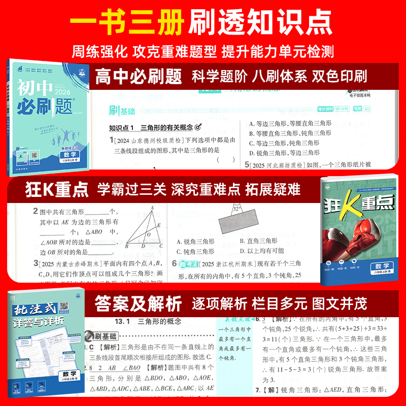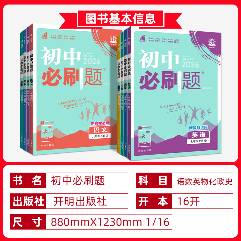 历史地理生物道德与法治人教版 语文英语外研版 教材同步中学教辅资料 初中必刷题七八九年级上册下册数学科学浙教版 浙江专用2026新版