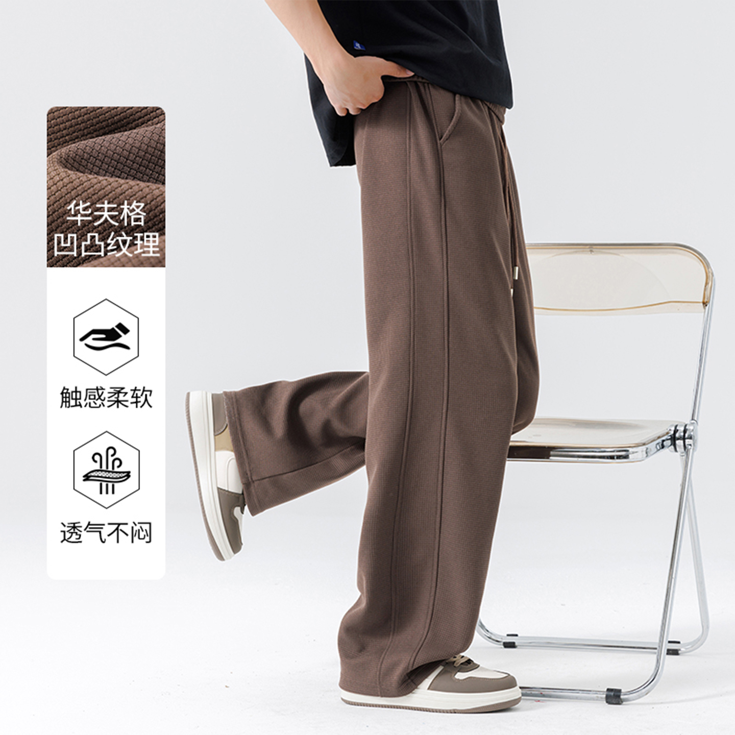 美式 秋季 华夫格垂感长裤 松弛穿搭宽松男士 班尼路裤 直筒裤 子男款