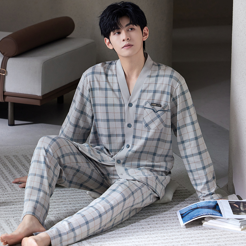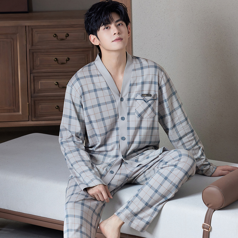 家居服套装 睡衣男春秋款 男士 2025年新款 可外穿格子家居服 纯棉长袖