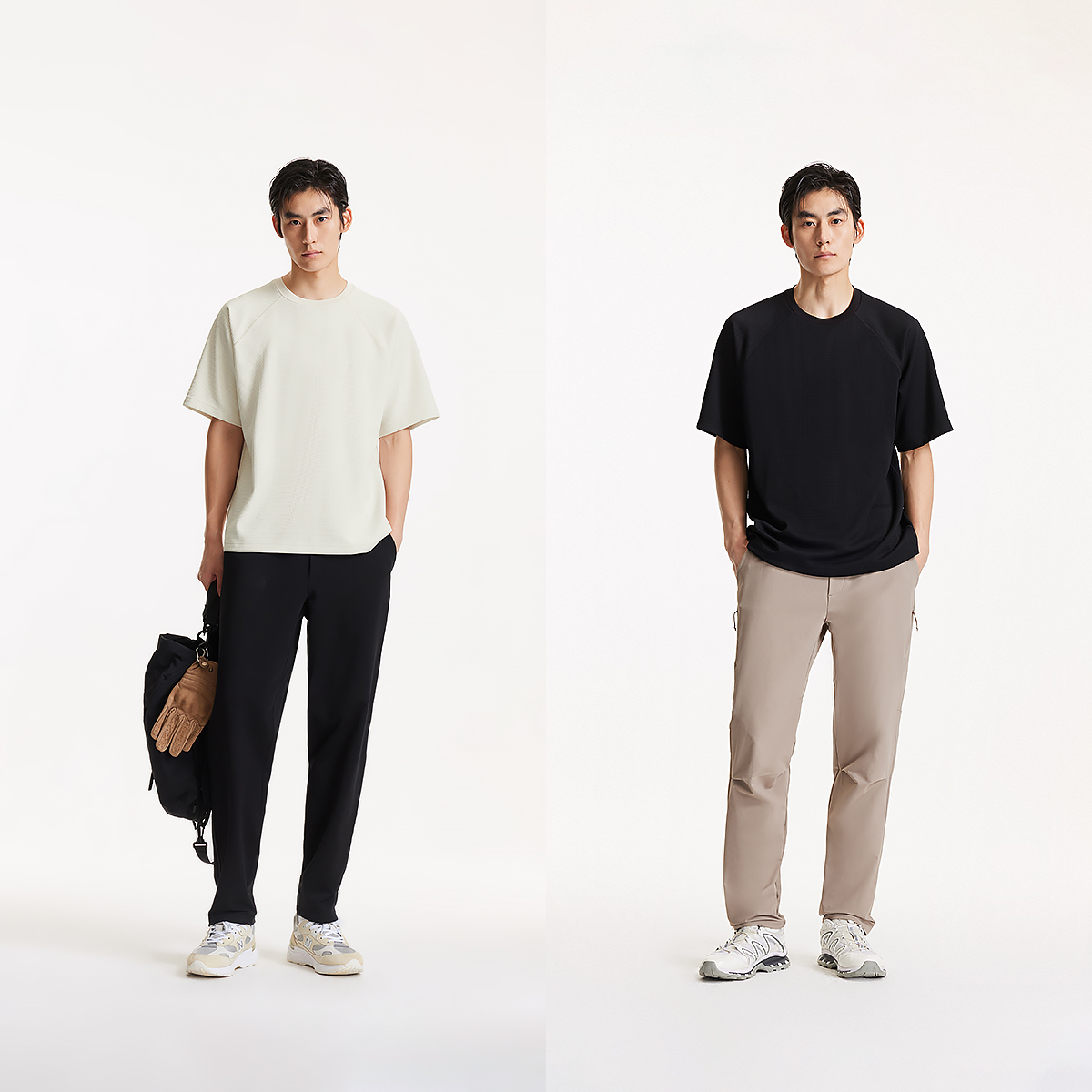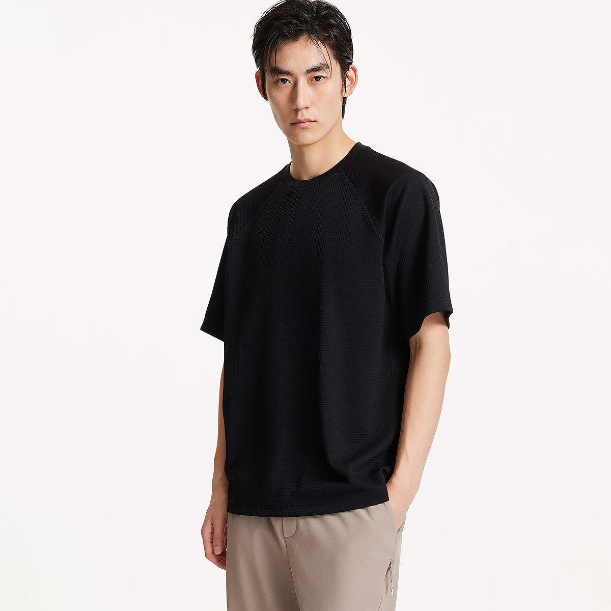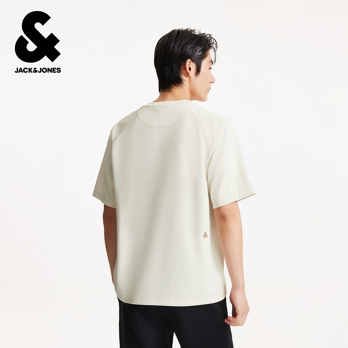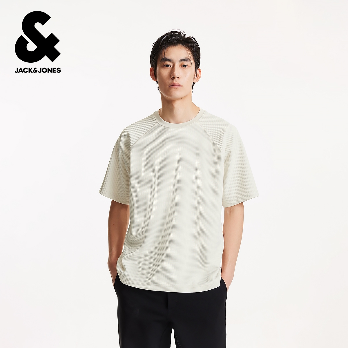 宽松短袖 杰克琼斯男装 格子提花日常简约圆领插肩袖 新款 T恤 秋季