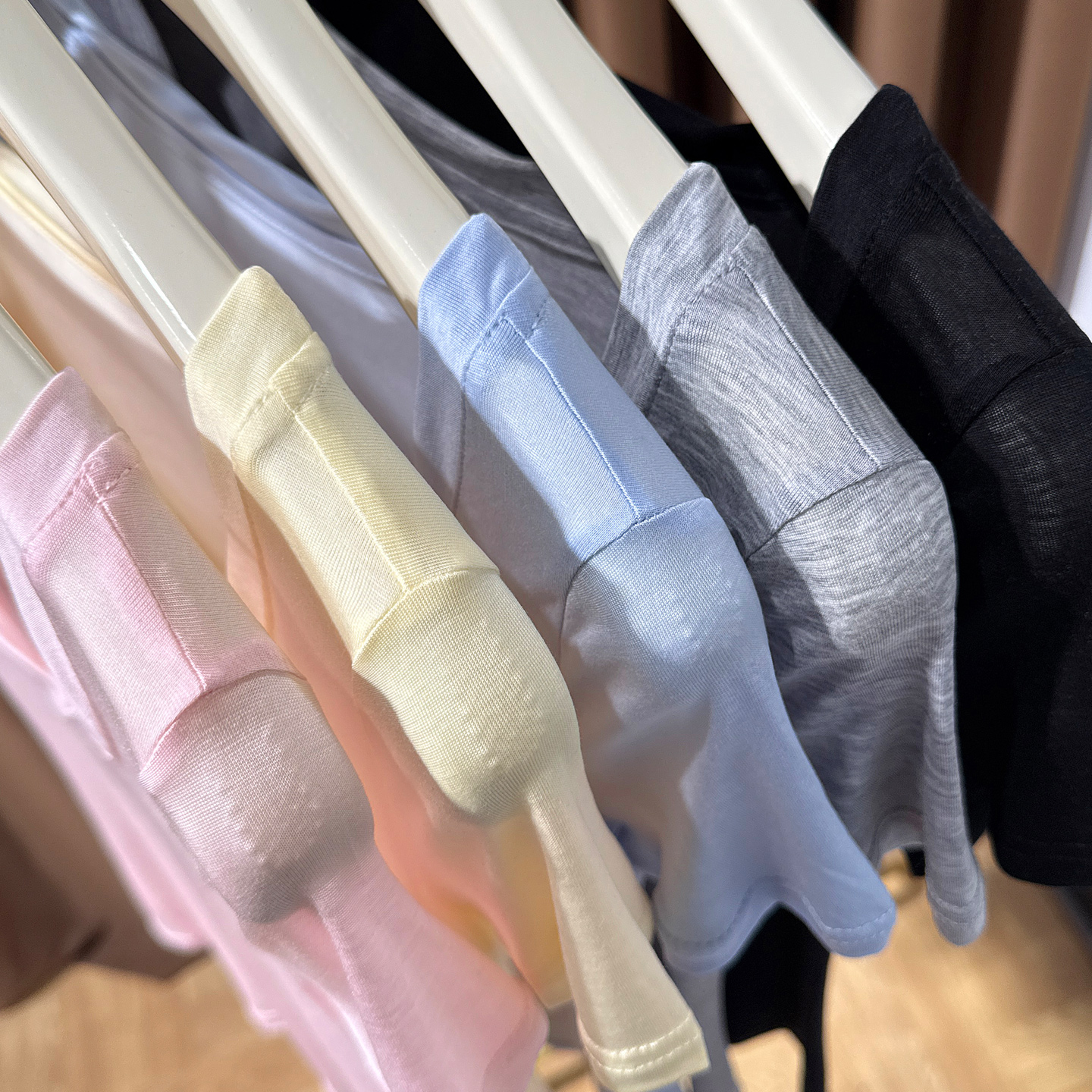 大领口天丝莱赛尔白色T恤女夏季 内搭低领上衣 凉感超薄冰丝短袖
