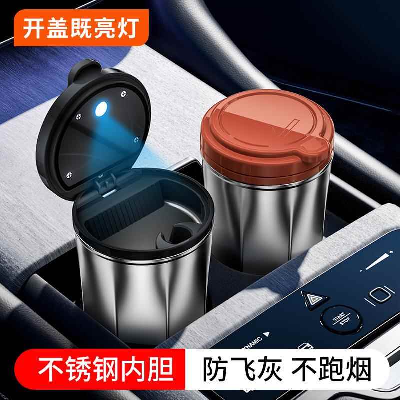 车载烟灰缸带灯防飞灰车内饰用品适用于奔驰宝马奥迪蔚来丰田理想