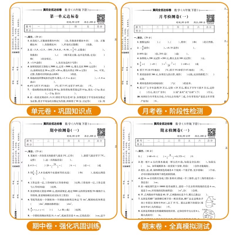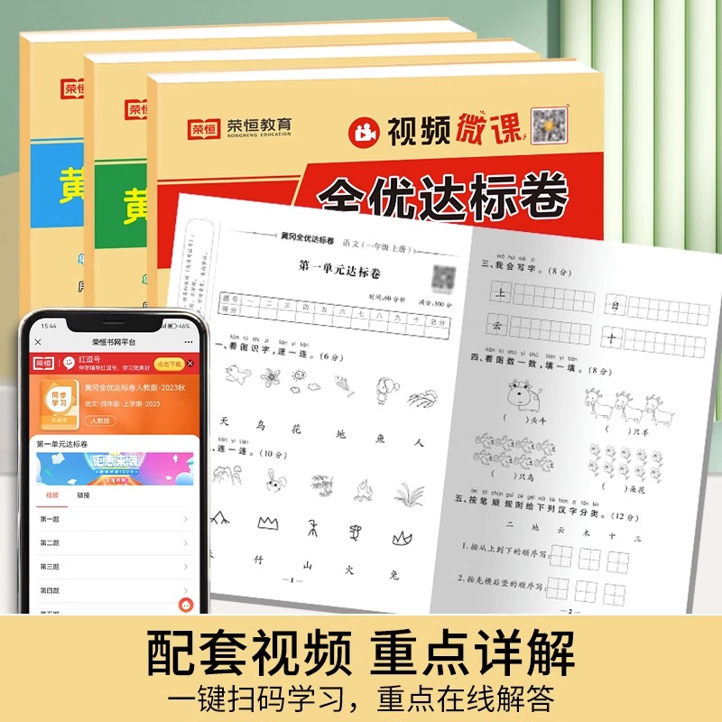 下同步练习册小学期末冲刺100分卷子 上 黄冈全优达标卷 一年级二年级三四五六年级上册下册试卷测试卷全套语文数学英语配套人教版