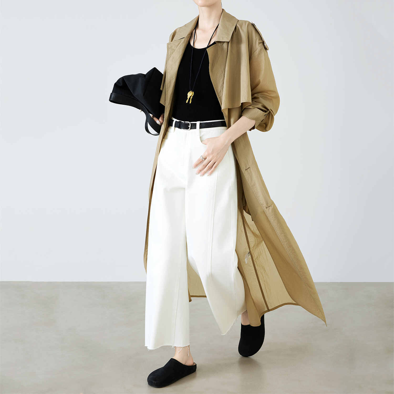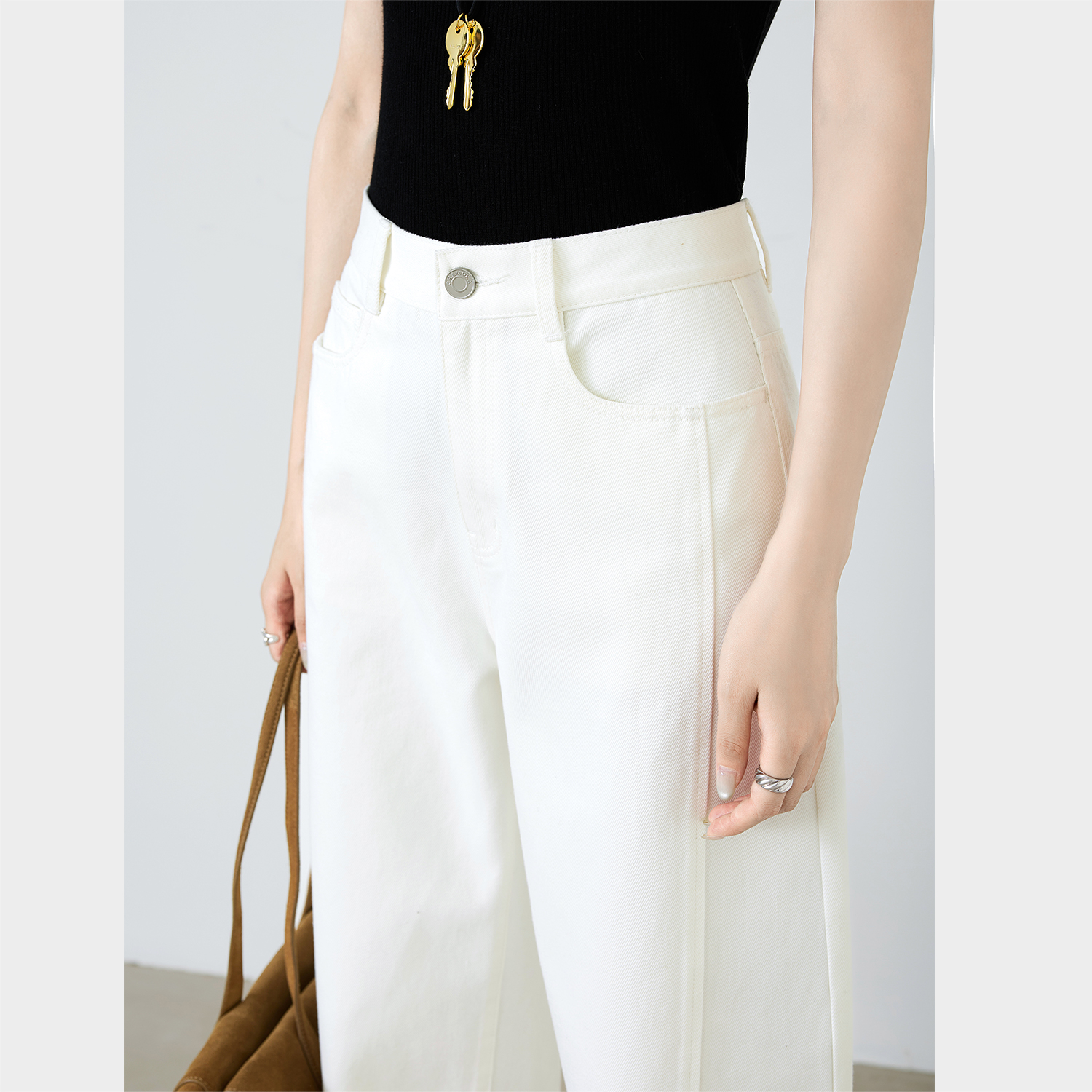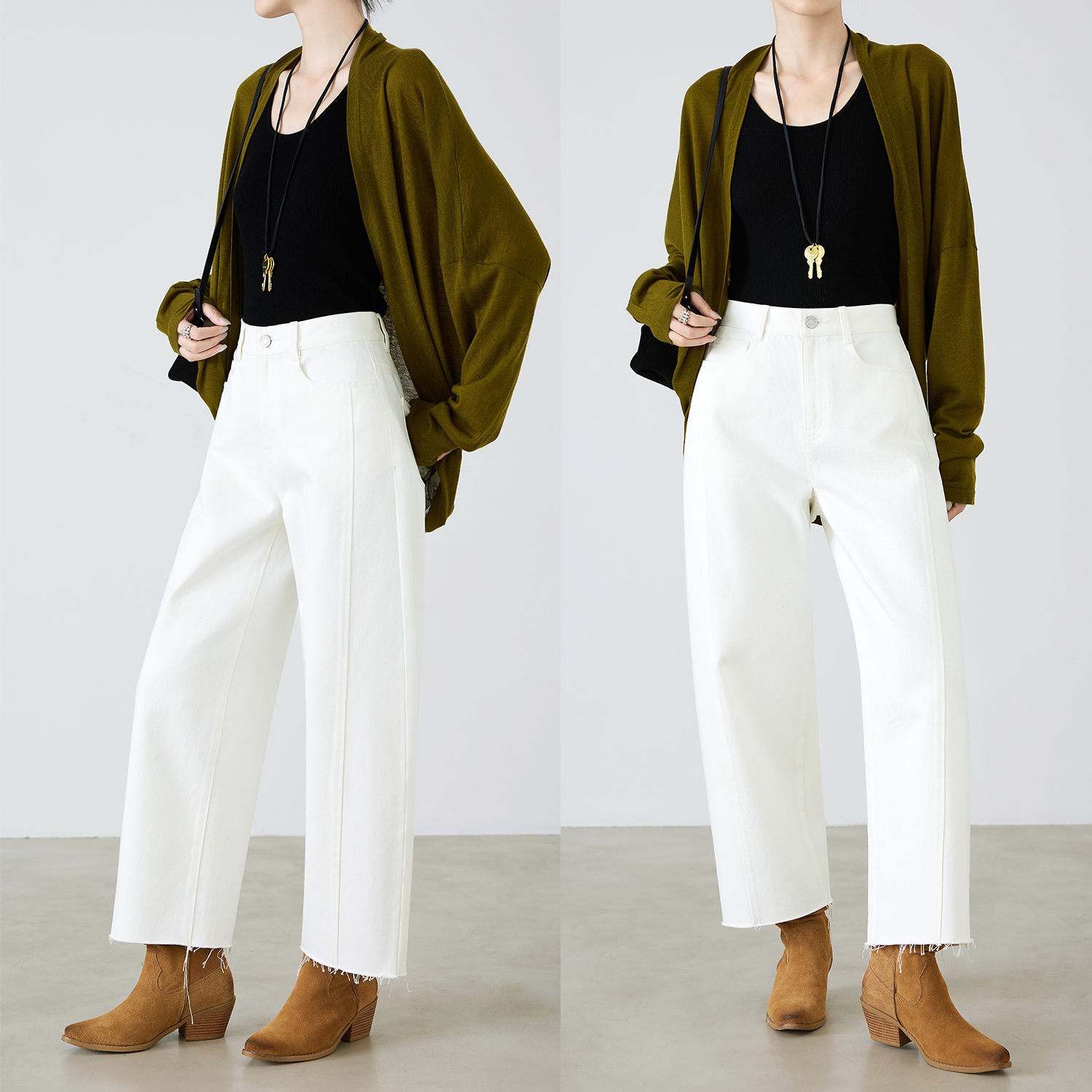 子宽松休闲弯刀裤 杏色小个子阔腿牛仔裤 梨型身材裤 秋季 女2025新款