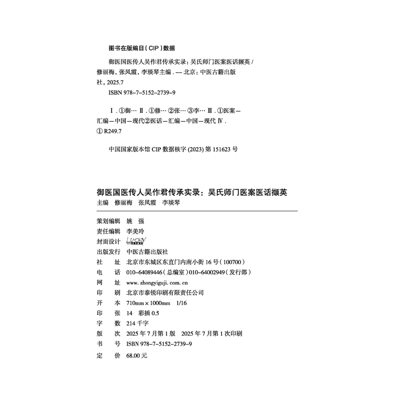 社新华书店正版 御医国医传人吴作君传承实录:吴氏师门医案医话撷英主编 李琰琴中医中医古籍出版 张凤霞 修丽梅