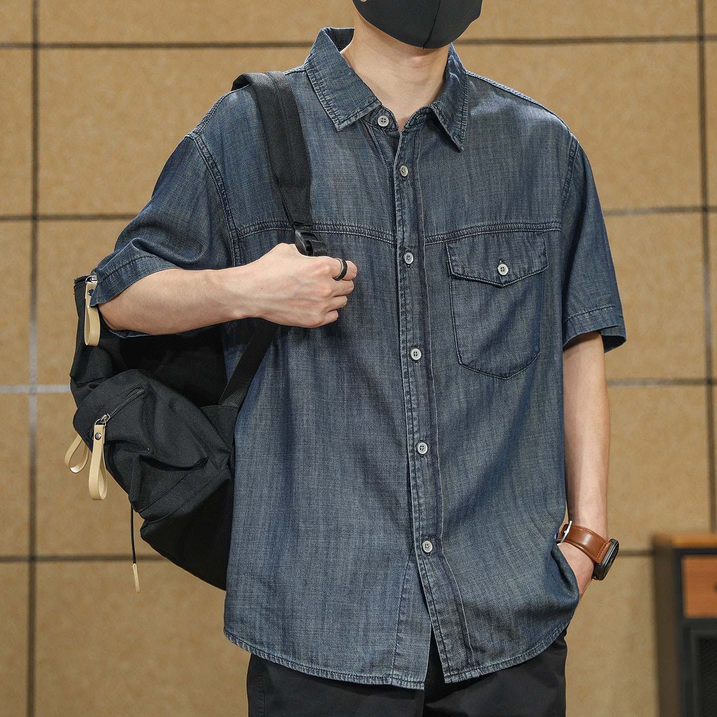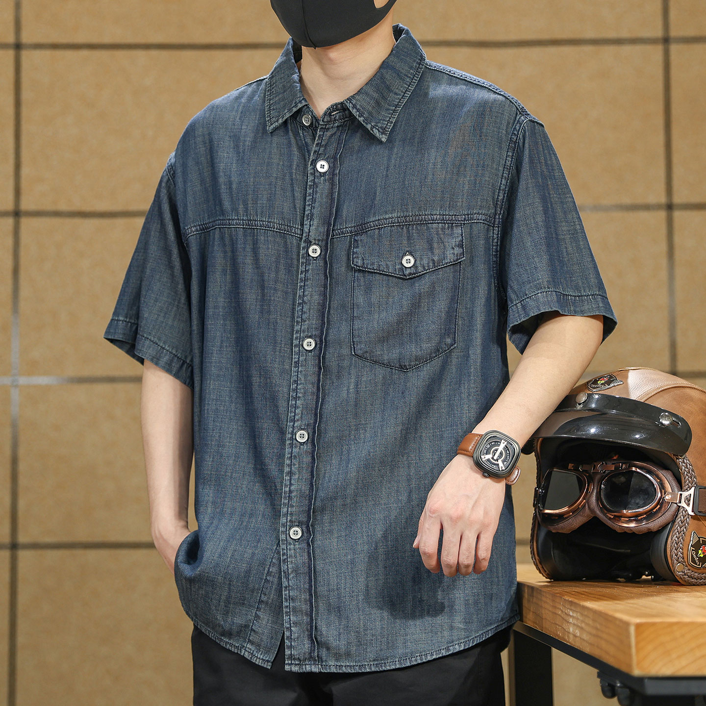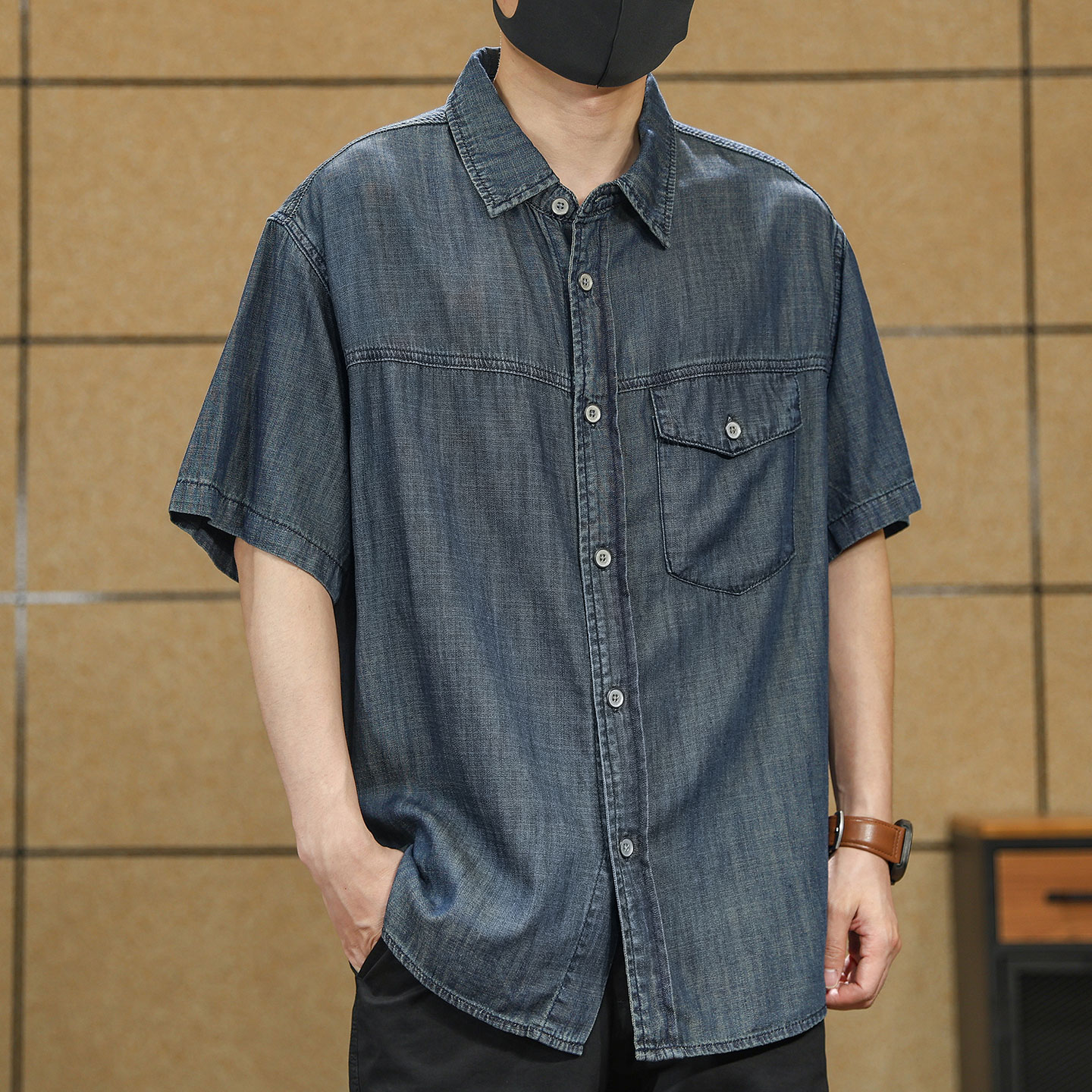 工装 翻领t恤宽松大码 短袖 男薄款 商务休闲纯棉衬衣潮 衬衫 2025夏季