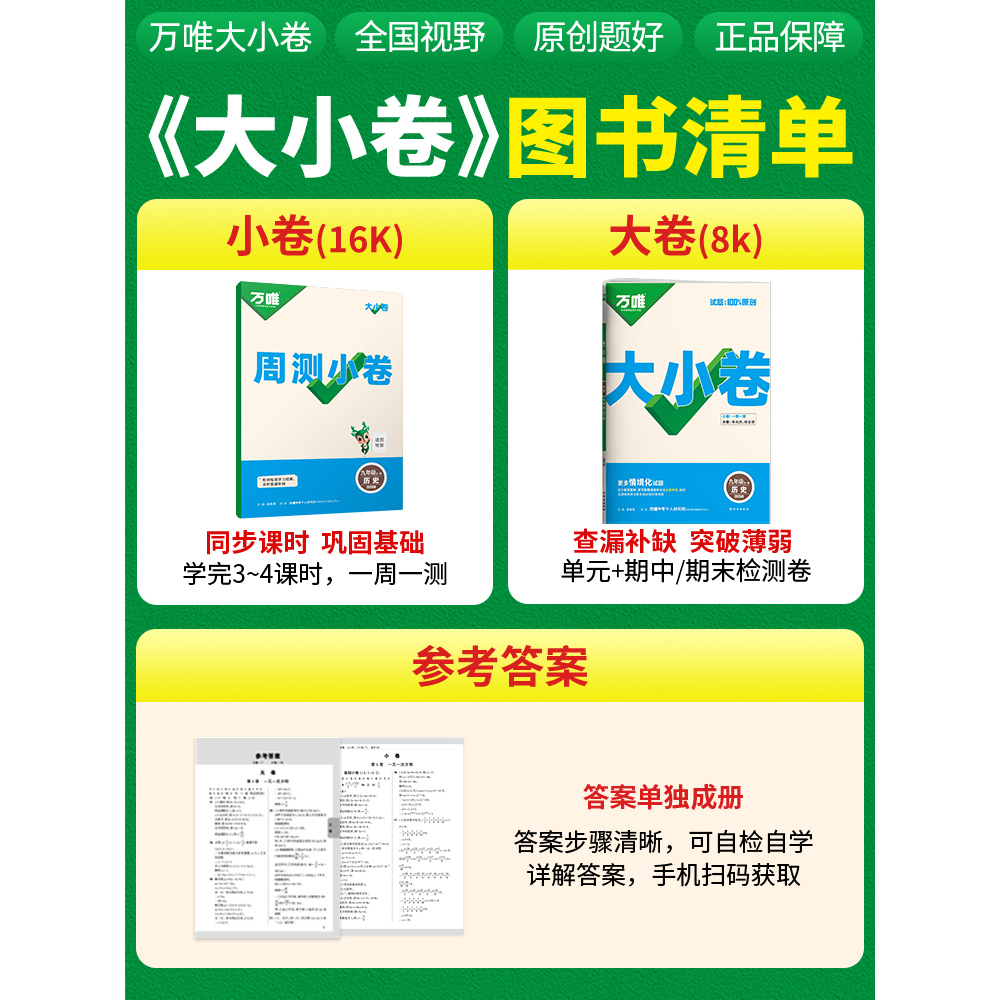 测试卷夯实基础综合检测原创题 全一册初中同步试卷周测小卷综合大卷9年级历史单元 2026新版 万唯大小卷九年级历史人教版