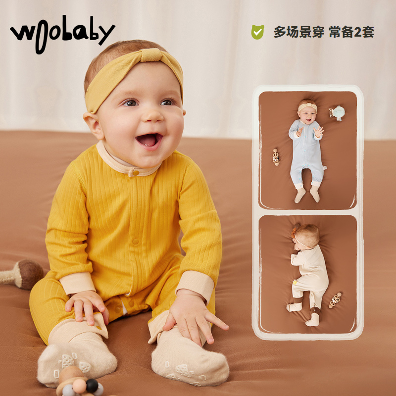 woobaby宝宝秋冬连体衣男女宝衣服爬服纯棉夹棉外出 清仓特卖
