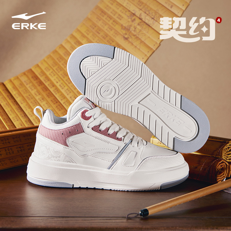 学生百搭高帮运动鞋 契约4 秋冬皮面增高休闲鞋 女鞋 子 鸿星尔克板鞋
