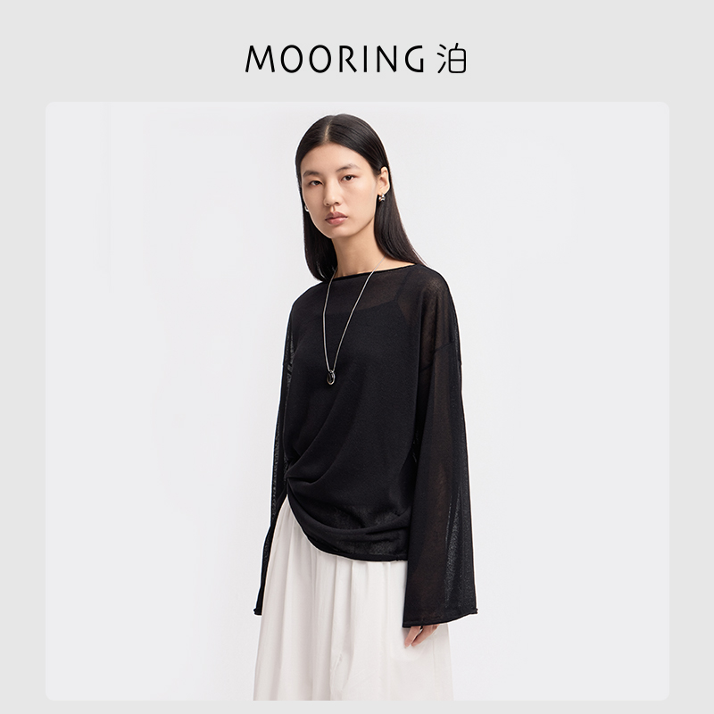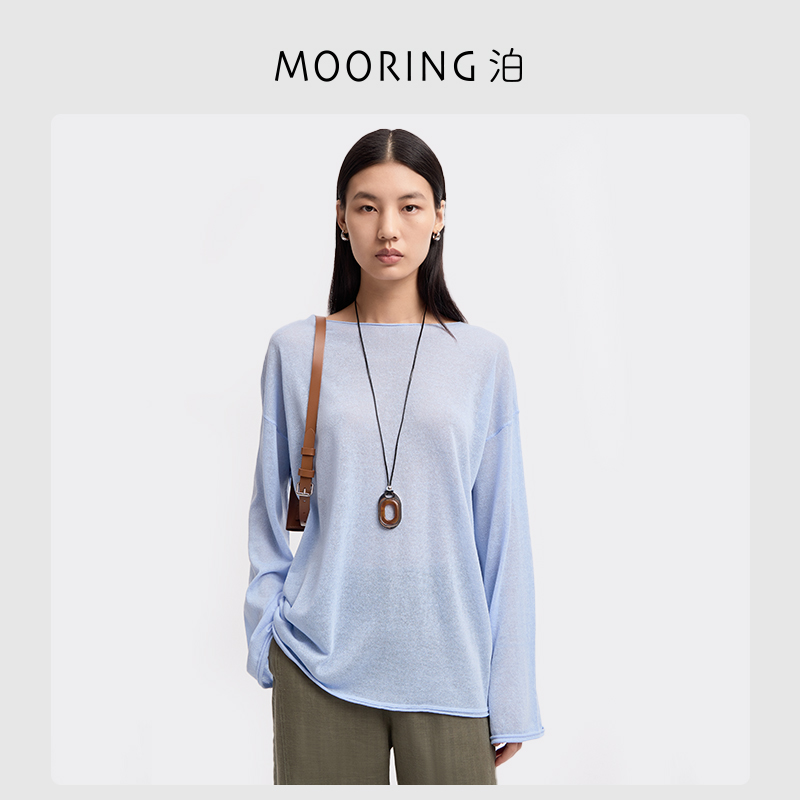 夏上衣女 一字领宽松薄款 MOORING泊 慵懒感亚麻微透针织防晒罩衫