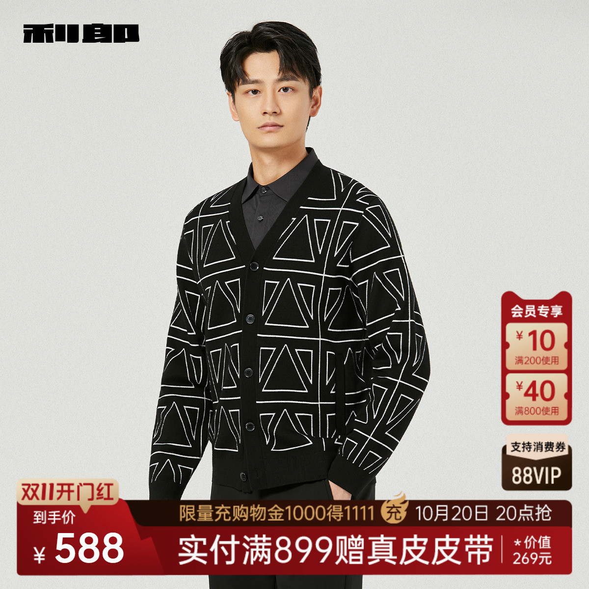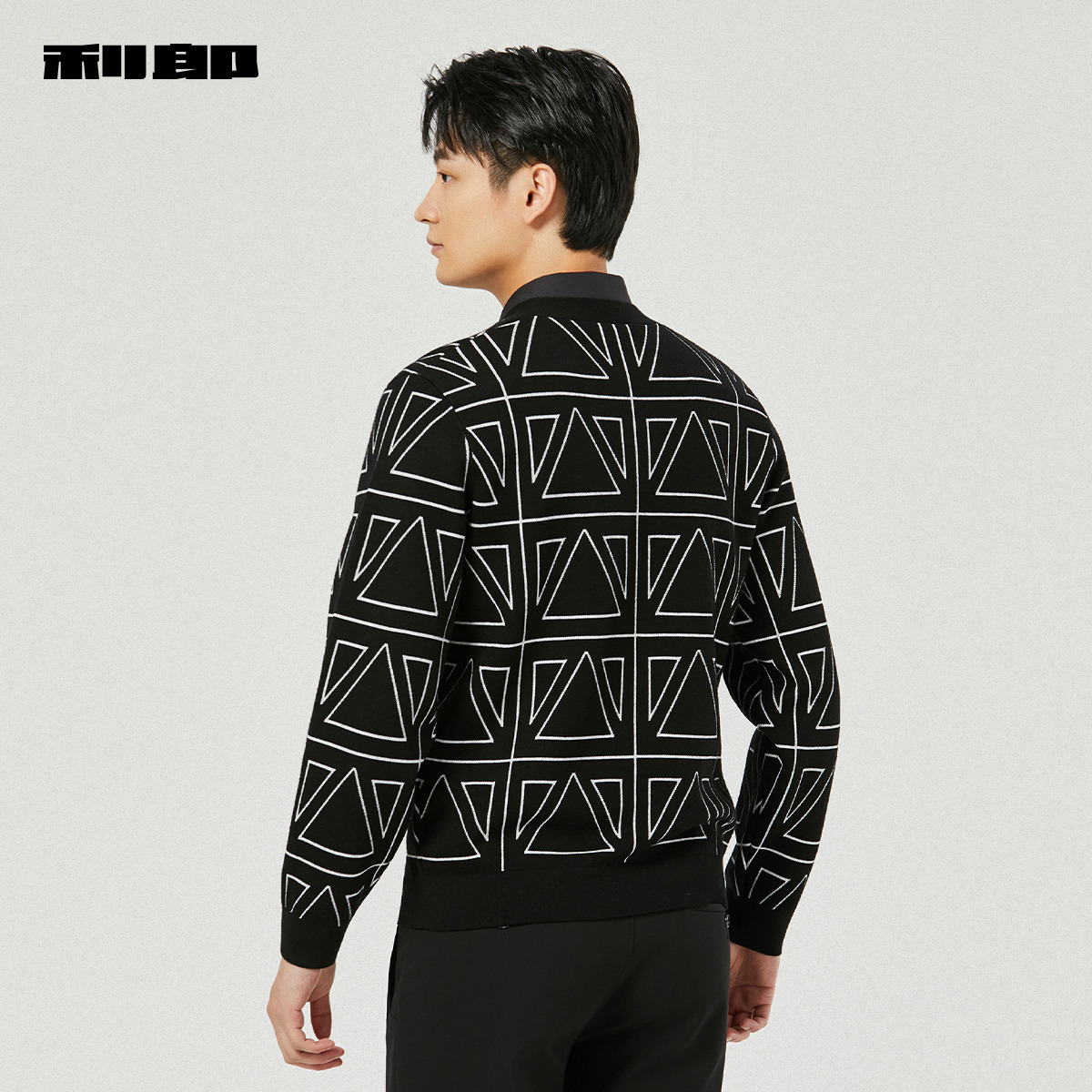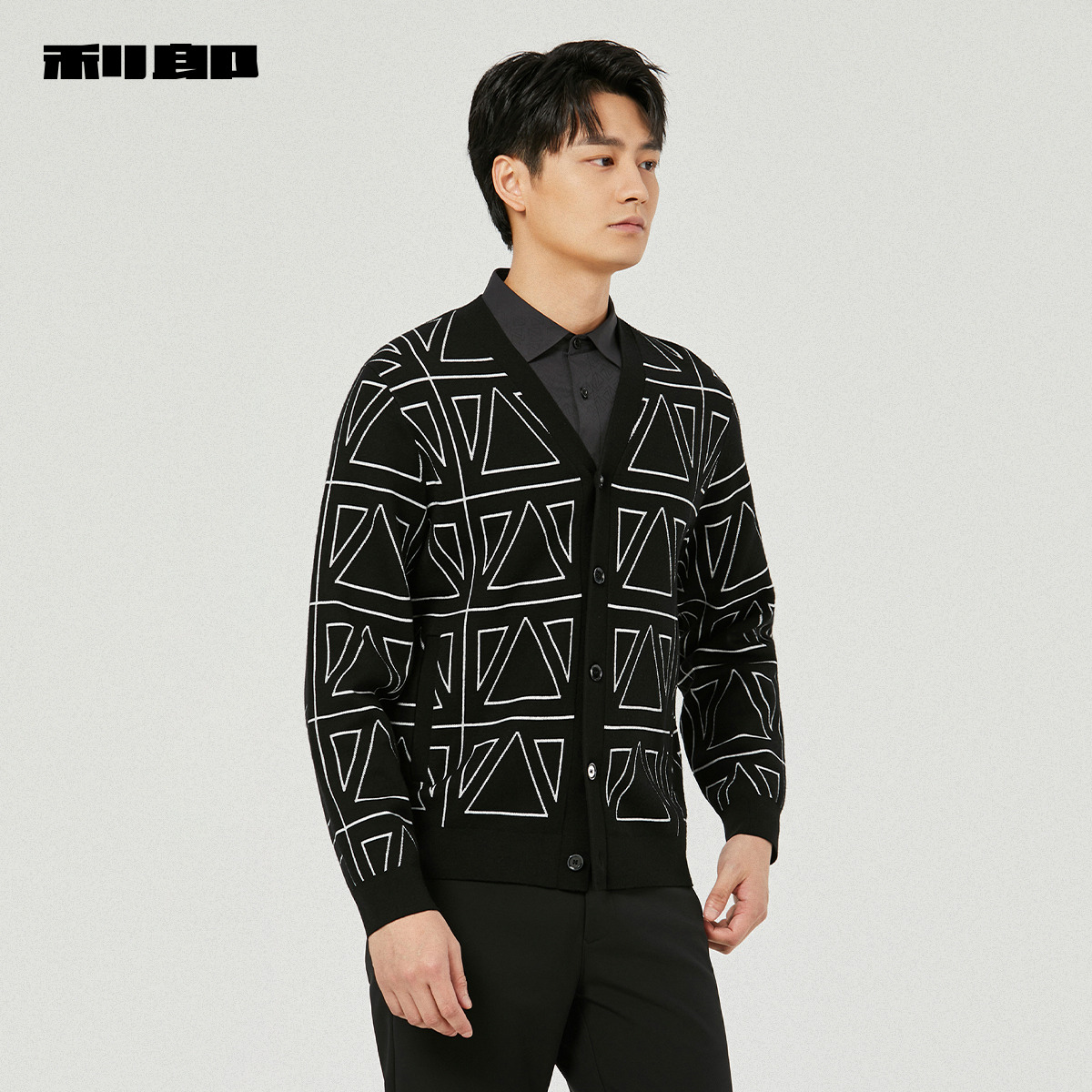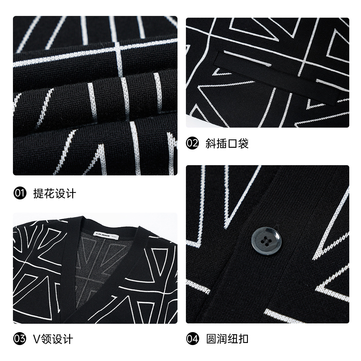 25秋新休闲微弹黑色毛衣外套男 针织开衫 HLA 海澜之家山不在高长袖
