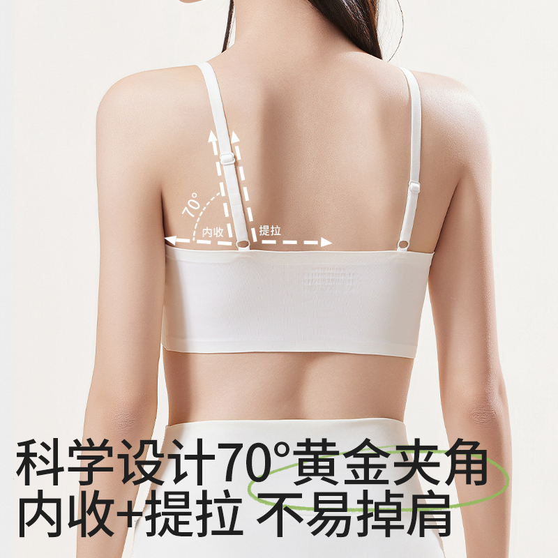 三福凉感背心新款 运动风文胸女固定杯抹胸美背细肩带裹胸吊带内衣