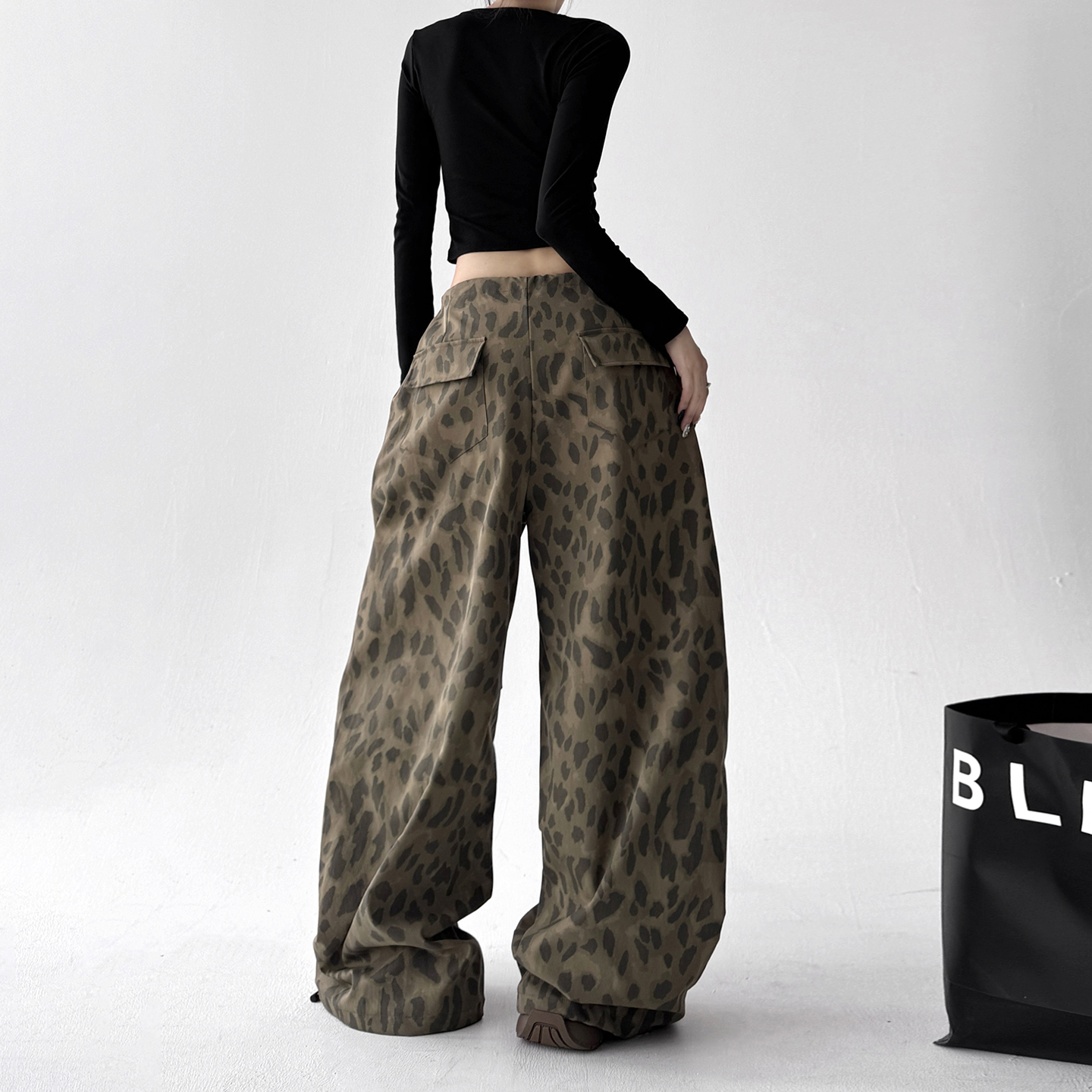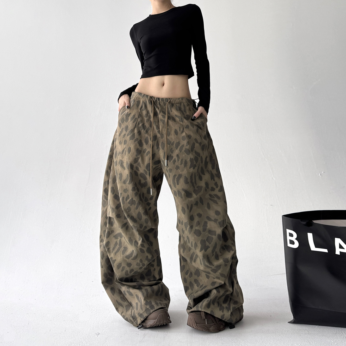 街舞休闲裤 2025美式 宽松显瘦直筒阔腿裤 女春秋季 子 复古豹纹休闲裤