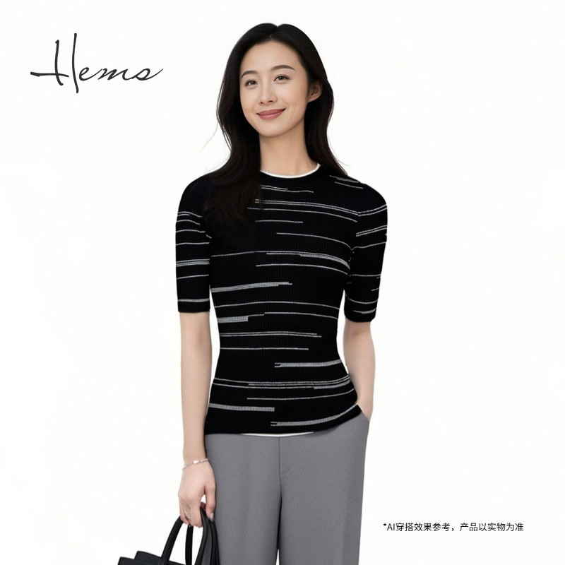 针织小衫 气质通勤五分袖 女D2913A41 圆领修身 海尔曼斯25早秋新品