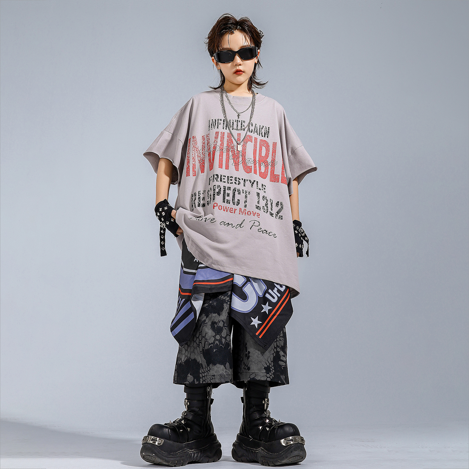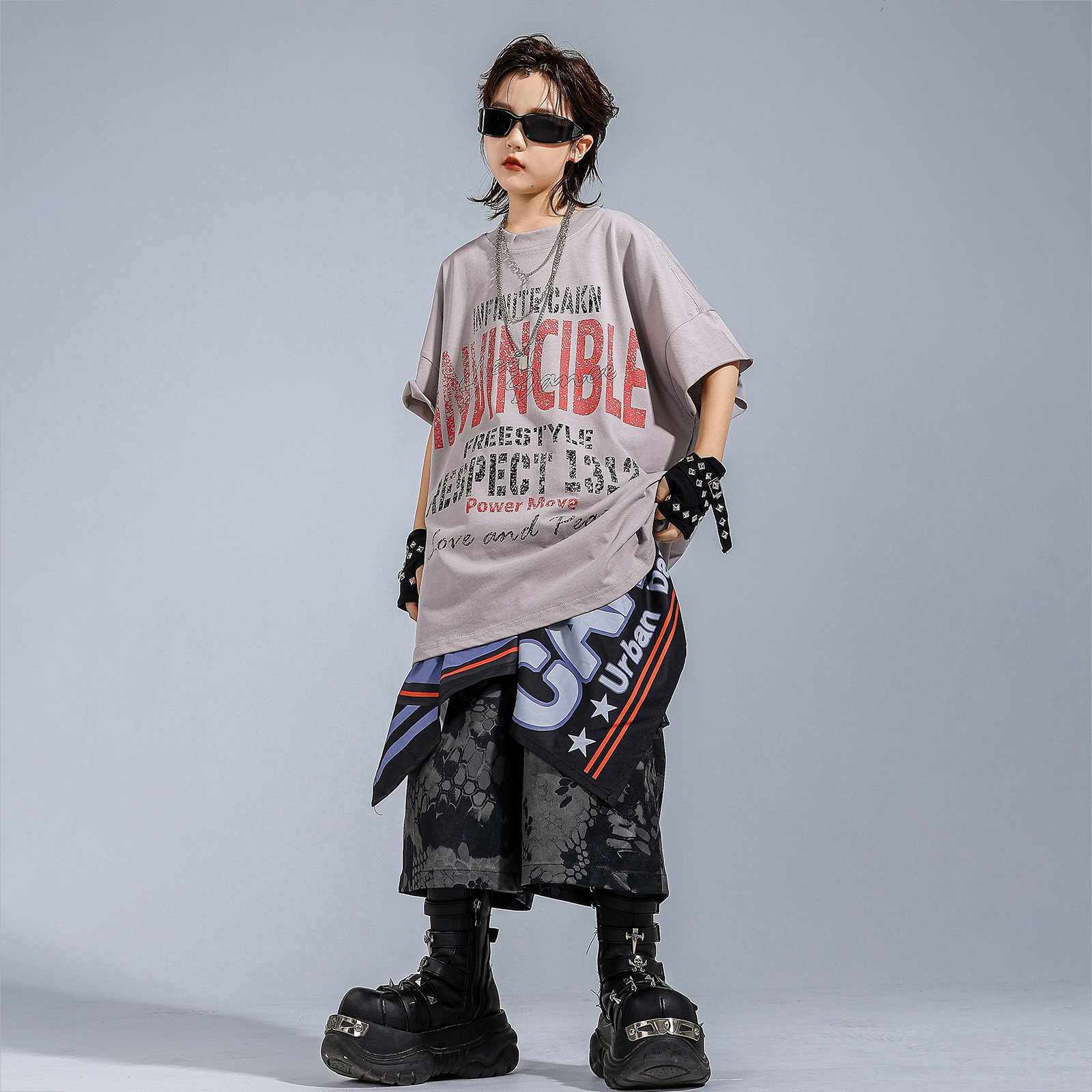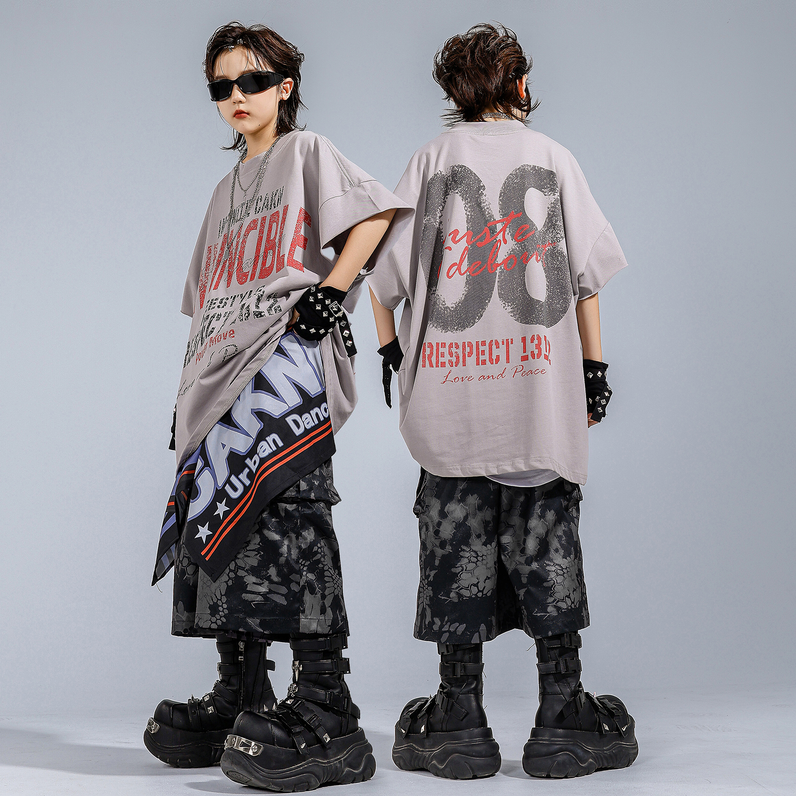 儿童街舞潮服表演服男童嘻哈潮牌套装 酷帅宽松少儿hiphop演出服装