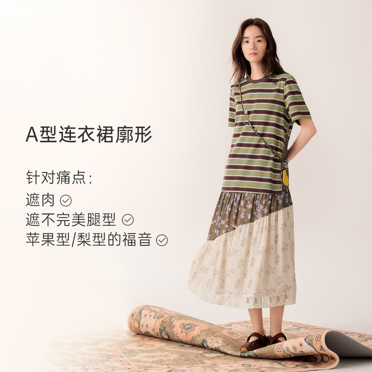 含棉撞色325342009老钱风收腰牛仔裙 新款 Vero Moda连衣裙2025秋季
