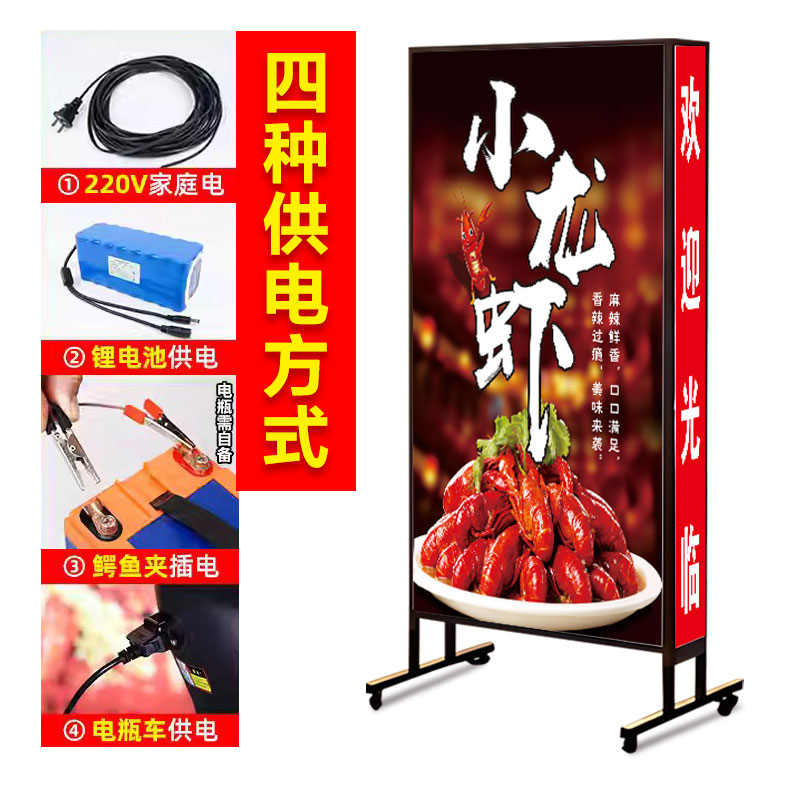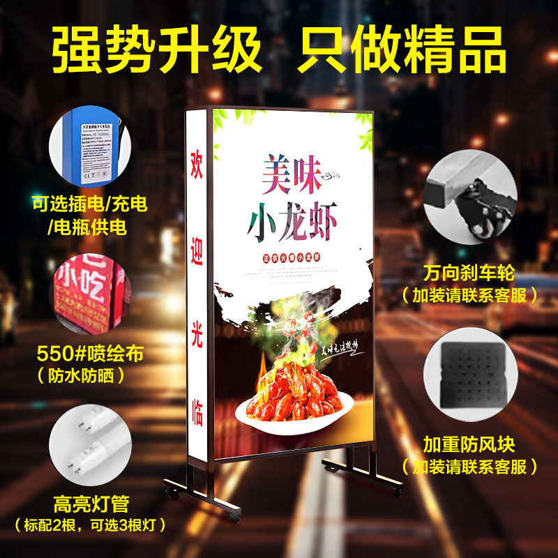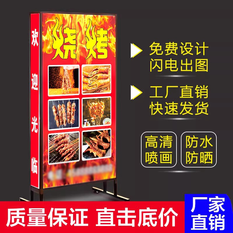 灯箱广告牌定做招牌户外门口烧烤展示牌充电立式 落地移动led发光