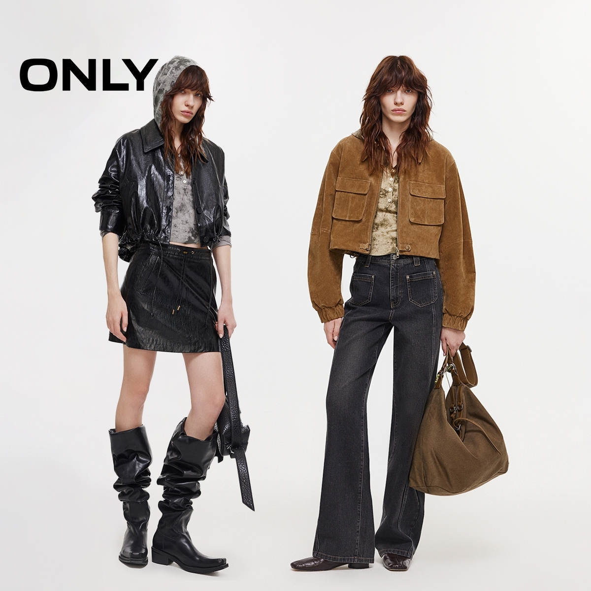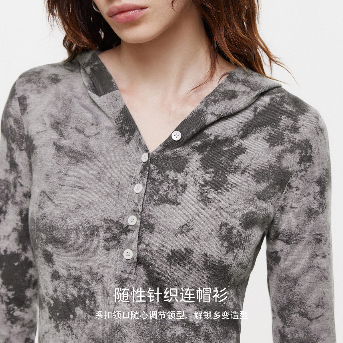 针织衫 ONLY2025秋季 可调节系扣连帽长袖 复古斑驳印花修身 女 新款