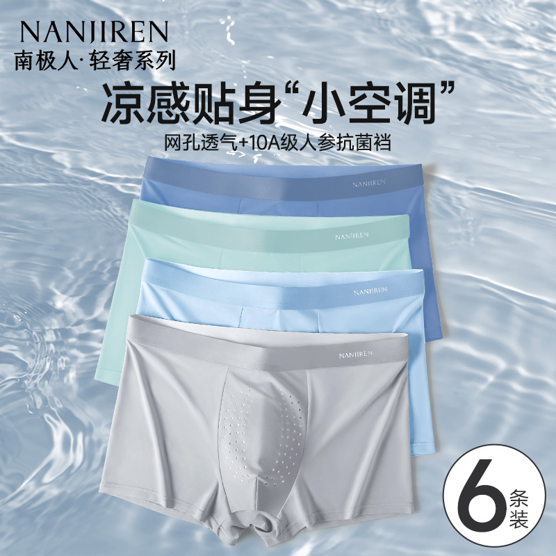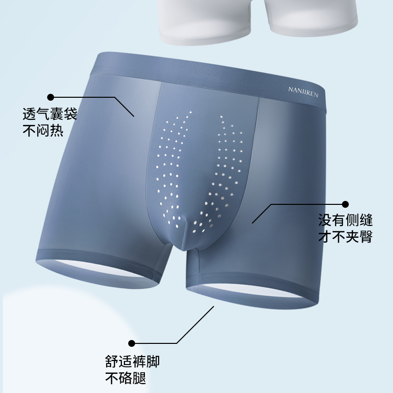 衩男生2025新款 南极人男士 冰丝无痕透气抗菌四角平角短裤 男款 内裤