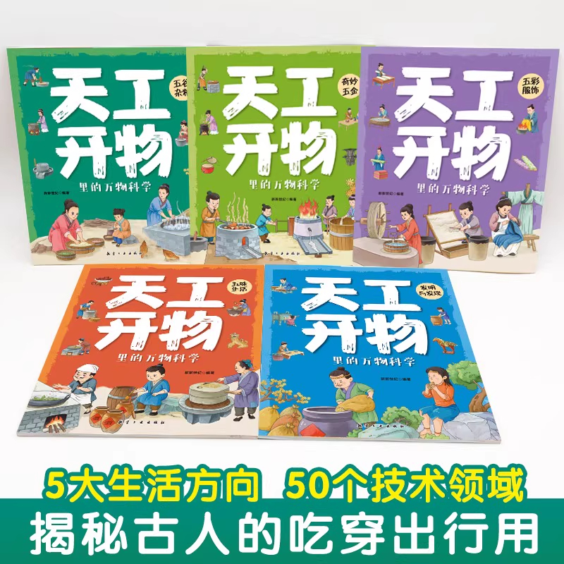 万物科学全5册 适合青少年看 儿童漫画书籍 吃穿出行古代科技百科全书小学生阅读课外书籍 百科全书 揭秘古人 天工开物里