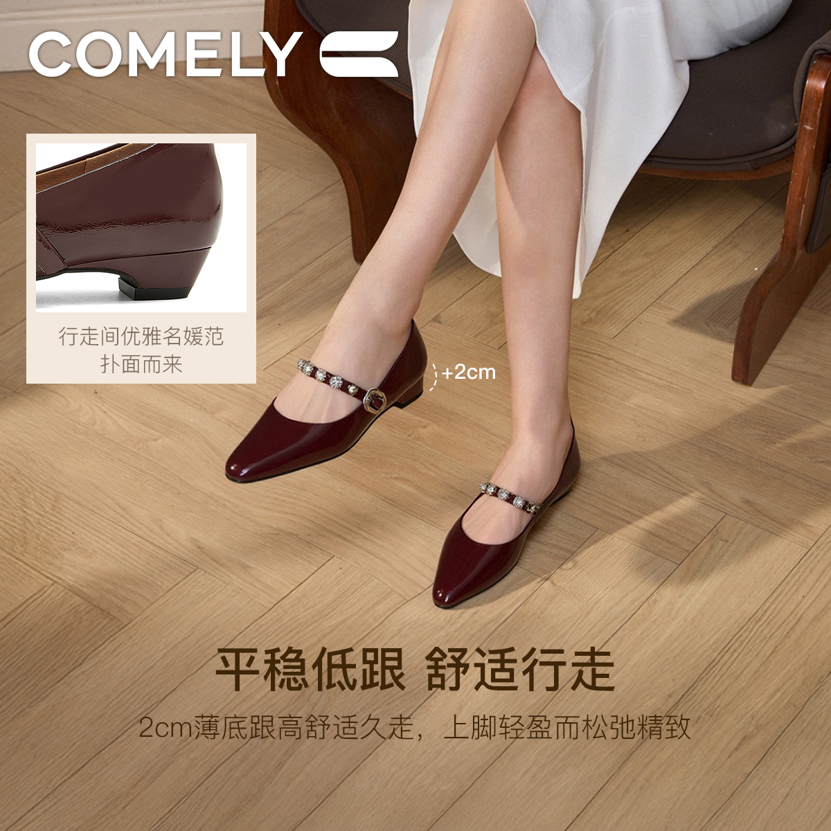 女 羊皮芭蕾玛丽珍单鞋 董洁董璇小酒窝同款 真美诗摩卡慕斯25秋新款