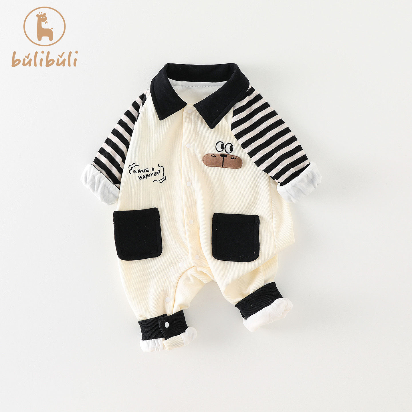 婴儿衣服秋装 爬服 双层外套男宝宝连体衣可爱洋气满月百天哈衣秋季