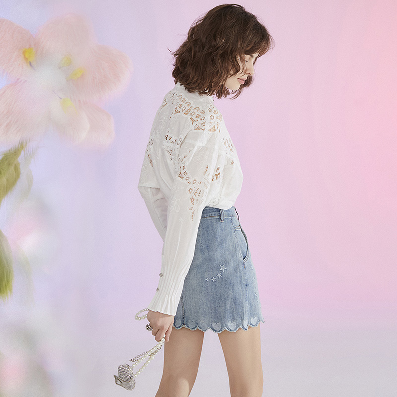 千朔不规则蕾丝白色半身裙早秋季 小个子仙女蛋糕裙a字长裙子 新款