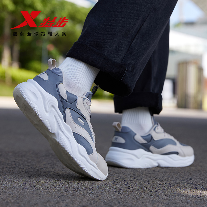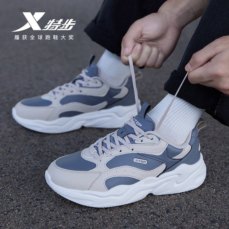 男鞋 子软弹平底鞋 厚底增高情侣休闲鞋 女鞋 革面 运动鞋 特步秋冬板鞋
