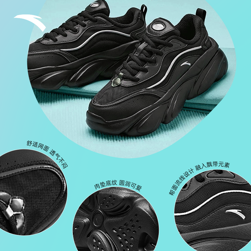 2025新款 全黑运动鞋 秋季 安踏喵喵鞋 子休闲鞋 黑色老爹鞋 猫爪鞋 女鞋