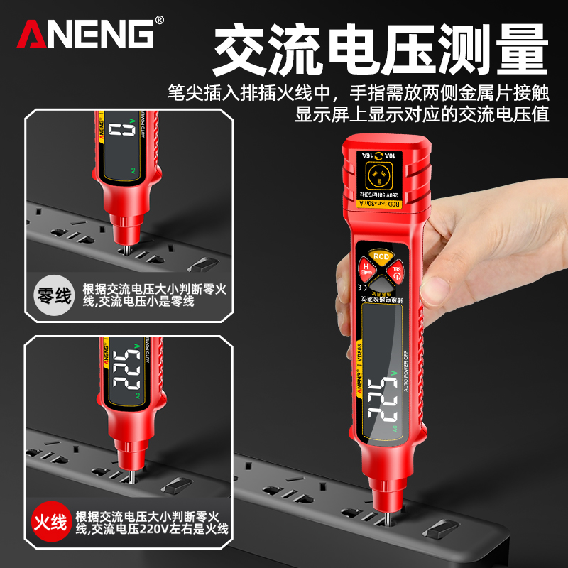 智能测电笔电工专用10A16A通用插座电路分析仪线路检测通断点漏电