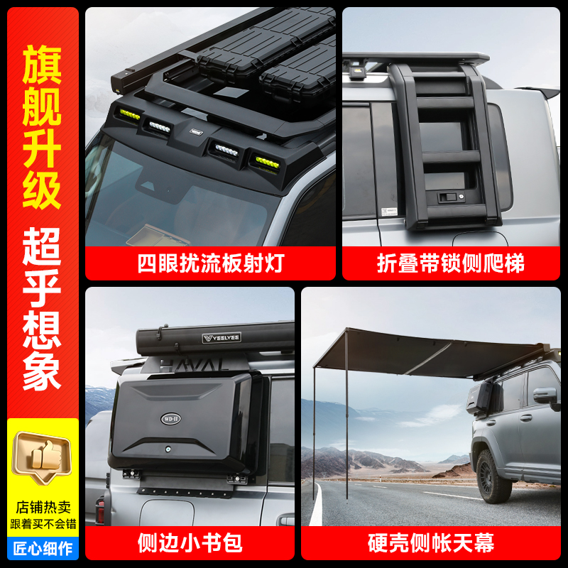 射灯折叠爬梯平台侧边帐篷书包 26哈弗猛龙车顶行李架越野改装