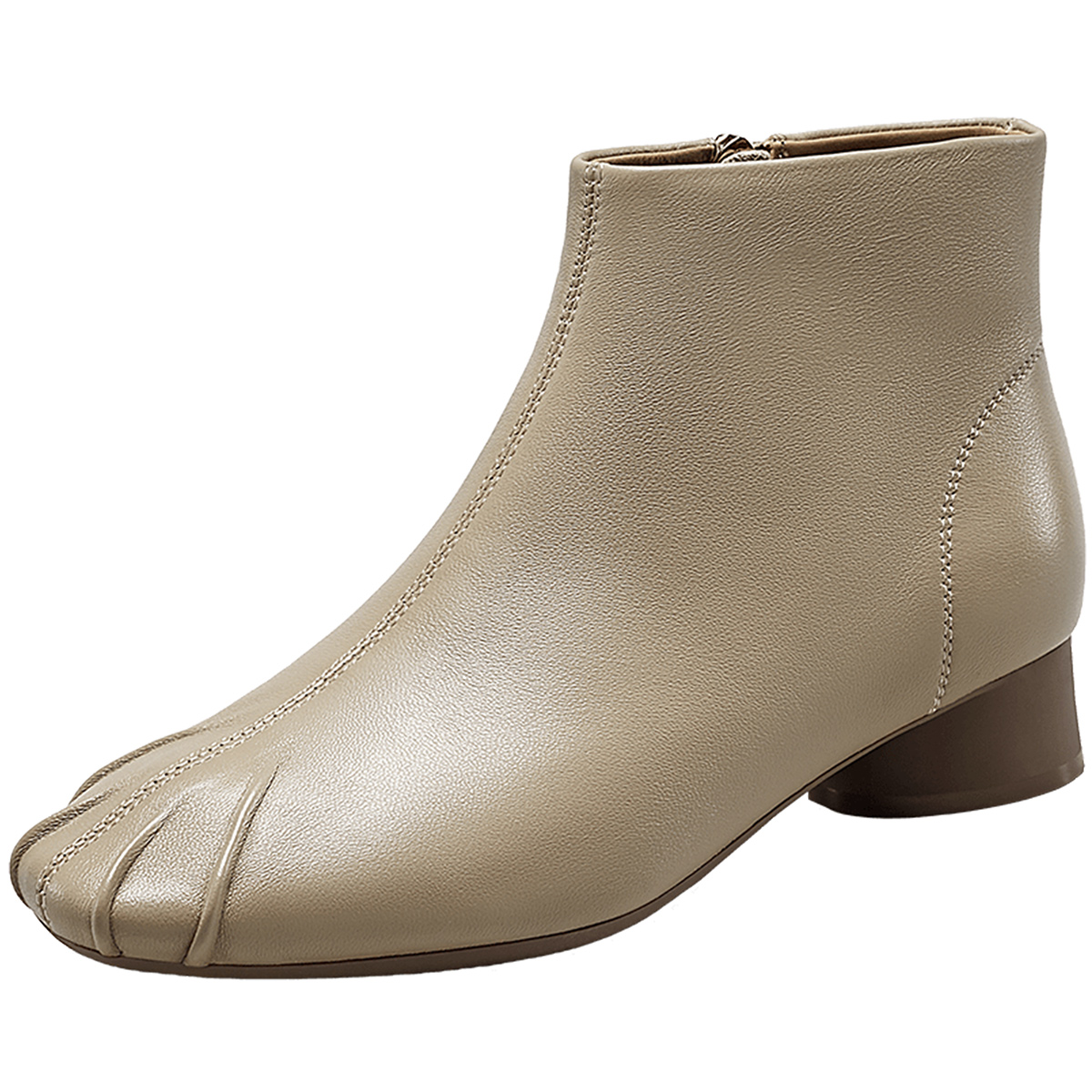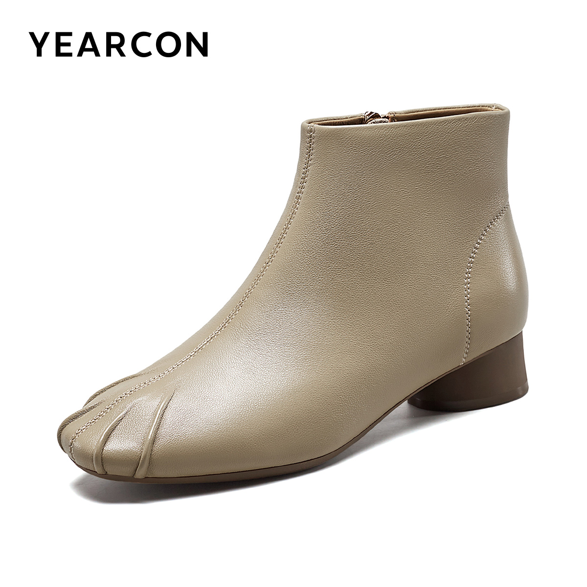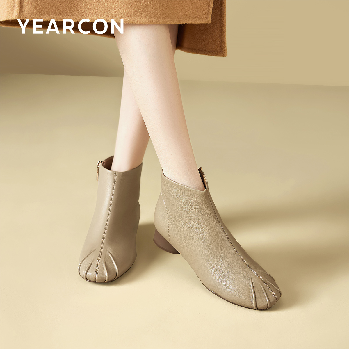 意尔康女鞋 秋冬羊皮短靴粗跟单靴气质英伦显瘦复古及踝靴女士皮鞋