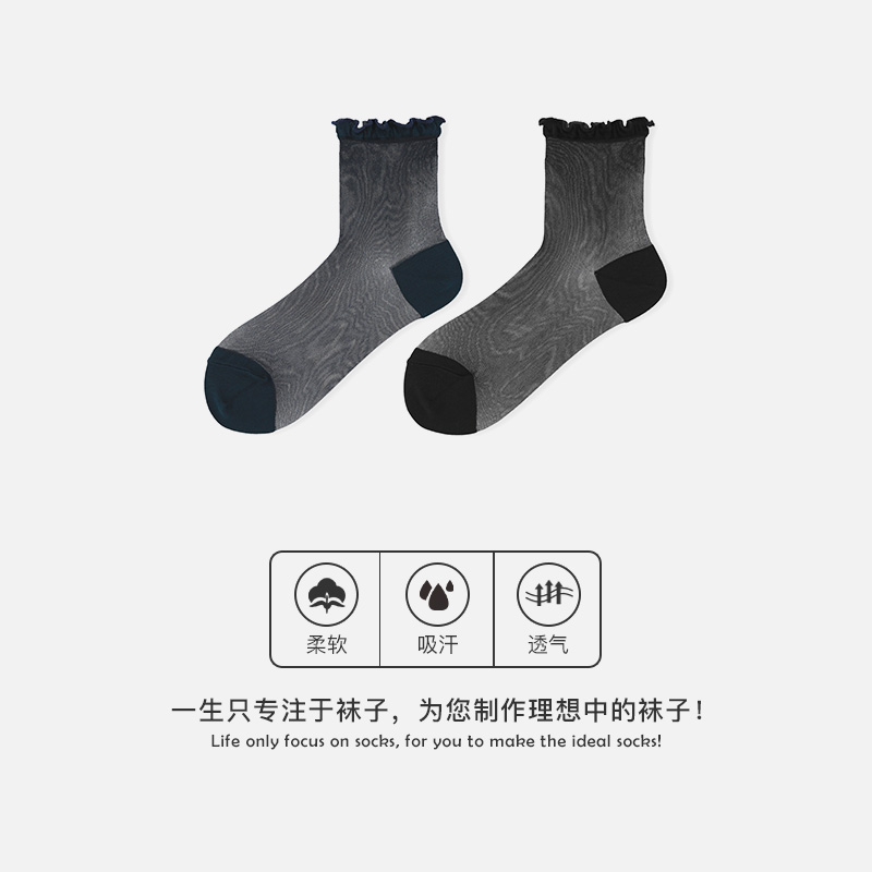 Tabio花边袜子女薄款 玻璃丝袜甜美少女中筒袜百搭堆堆袜 透气时尚