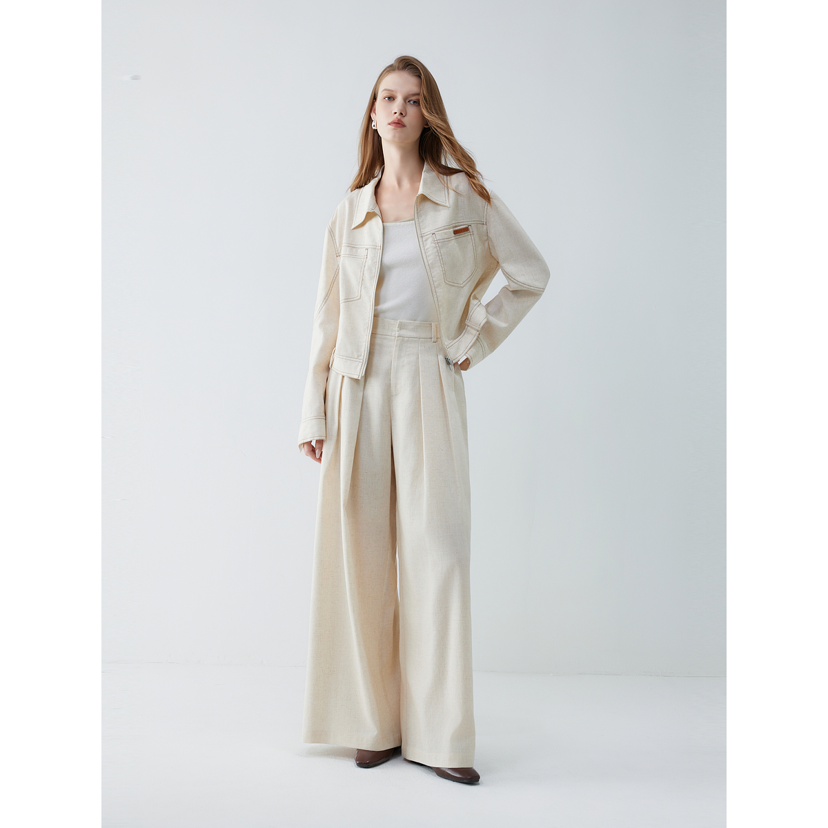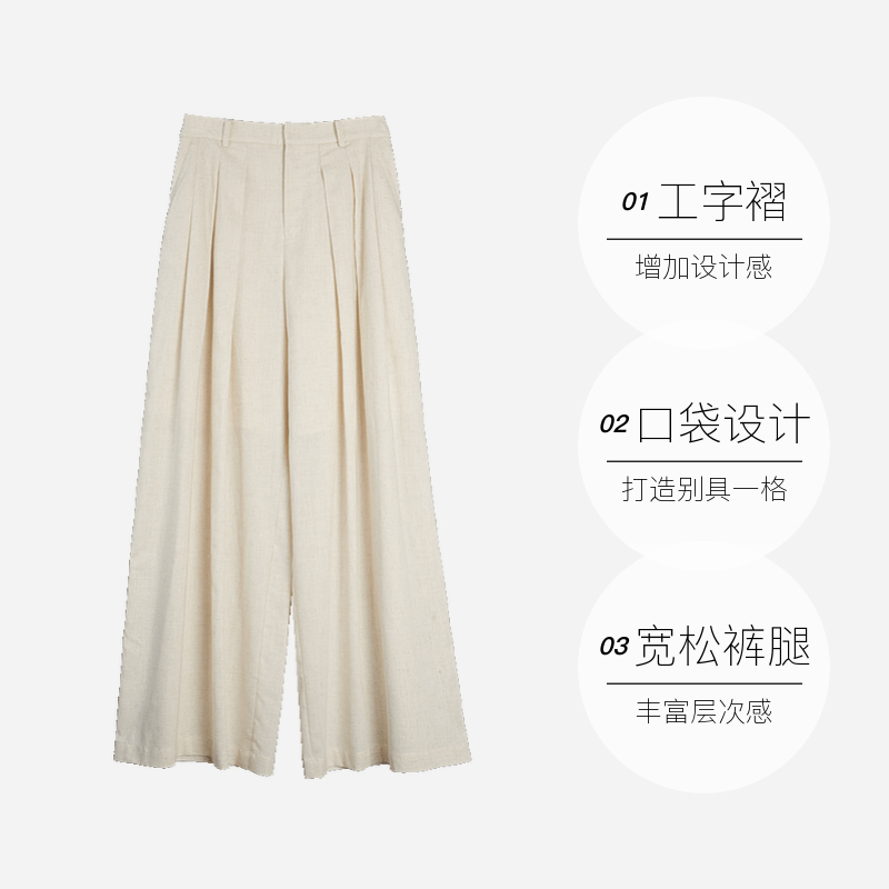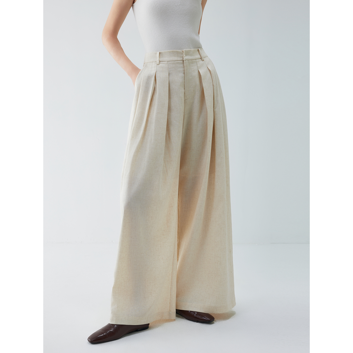女2025秋新款 老钱风亚麻休闲裤 ELLE法式 莱赛尔天丝阔腿裤 自营