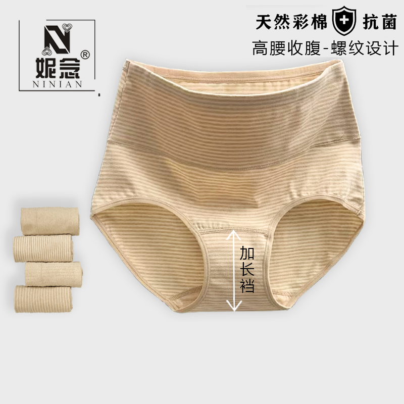 彩棉女无染色透气抗菌高腰舒适透气收腹纯棉底裆女内裤 加长裆