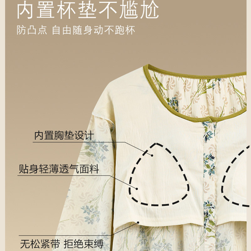 纯棉七分袖 开衫 九分袖 家居服两件套装 九分裤 浪莎带胸垫睡衣女夏季