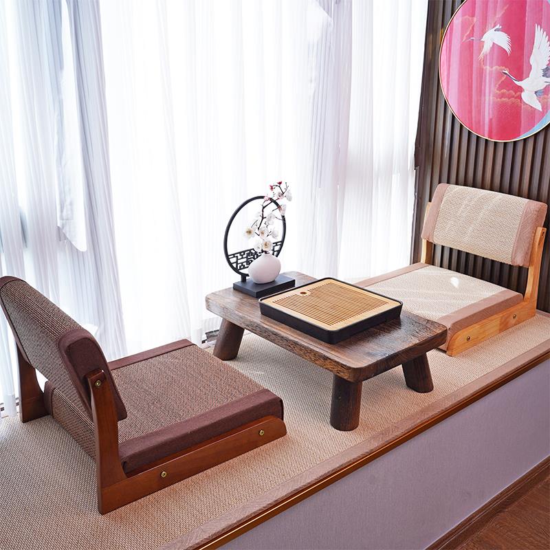 天然竹编飘窗椅榻榻米座椅日式 无腿靠背凳实木和室椅矮椅懒人坐椅