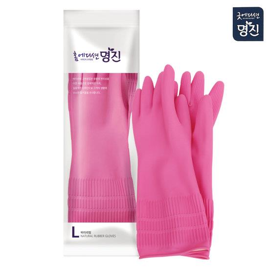韩国明进胶皮手套粉色家务手套光里乳胶清洁手套常规款
