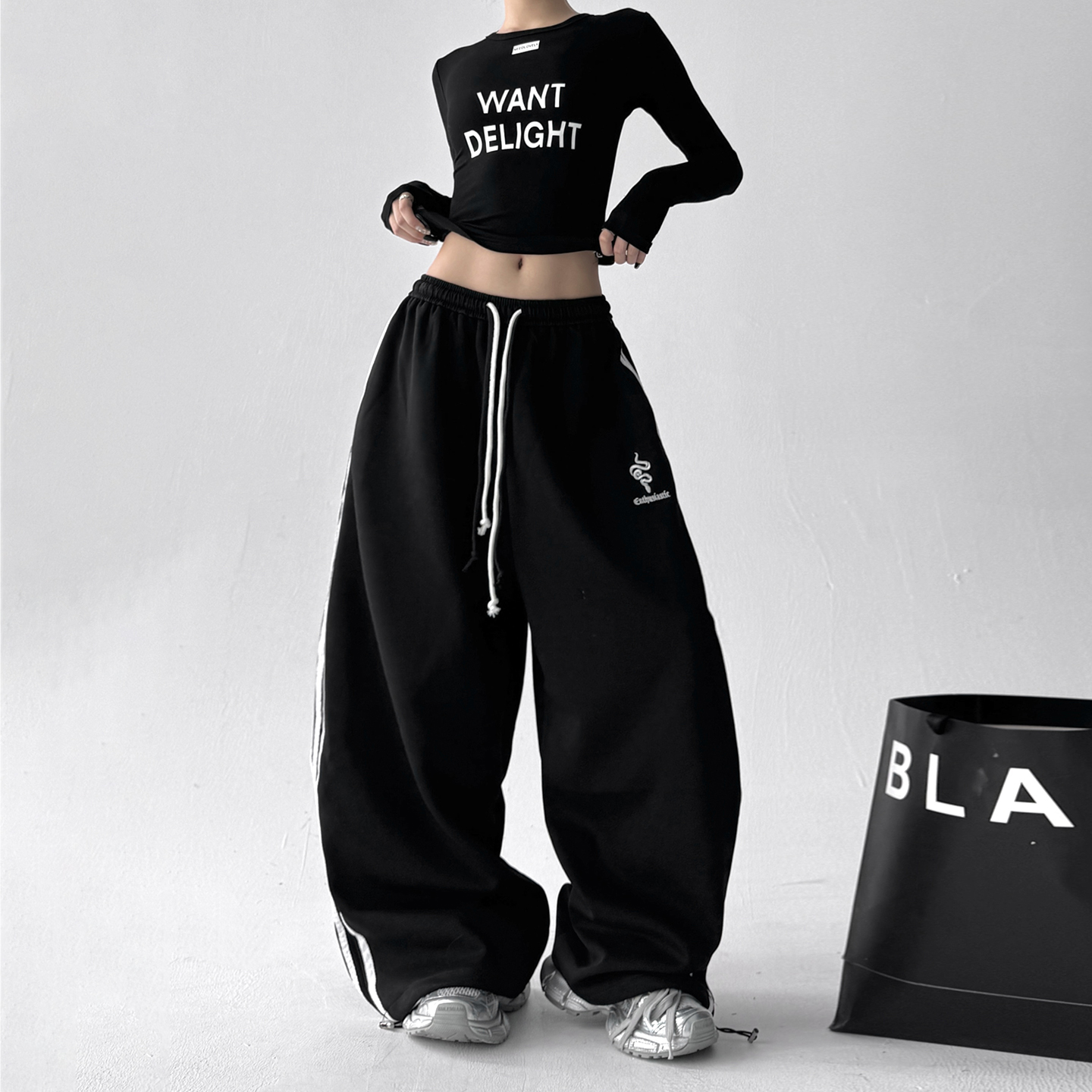 新款 宽松运动卫裤 美式 女高腰显瘦直筒阔腿裤 复古休闲裤 2025秋季