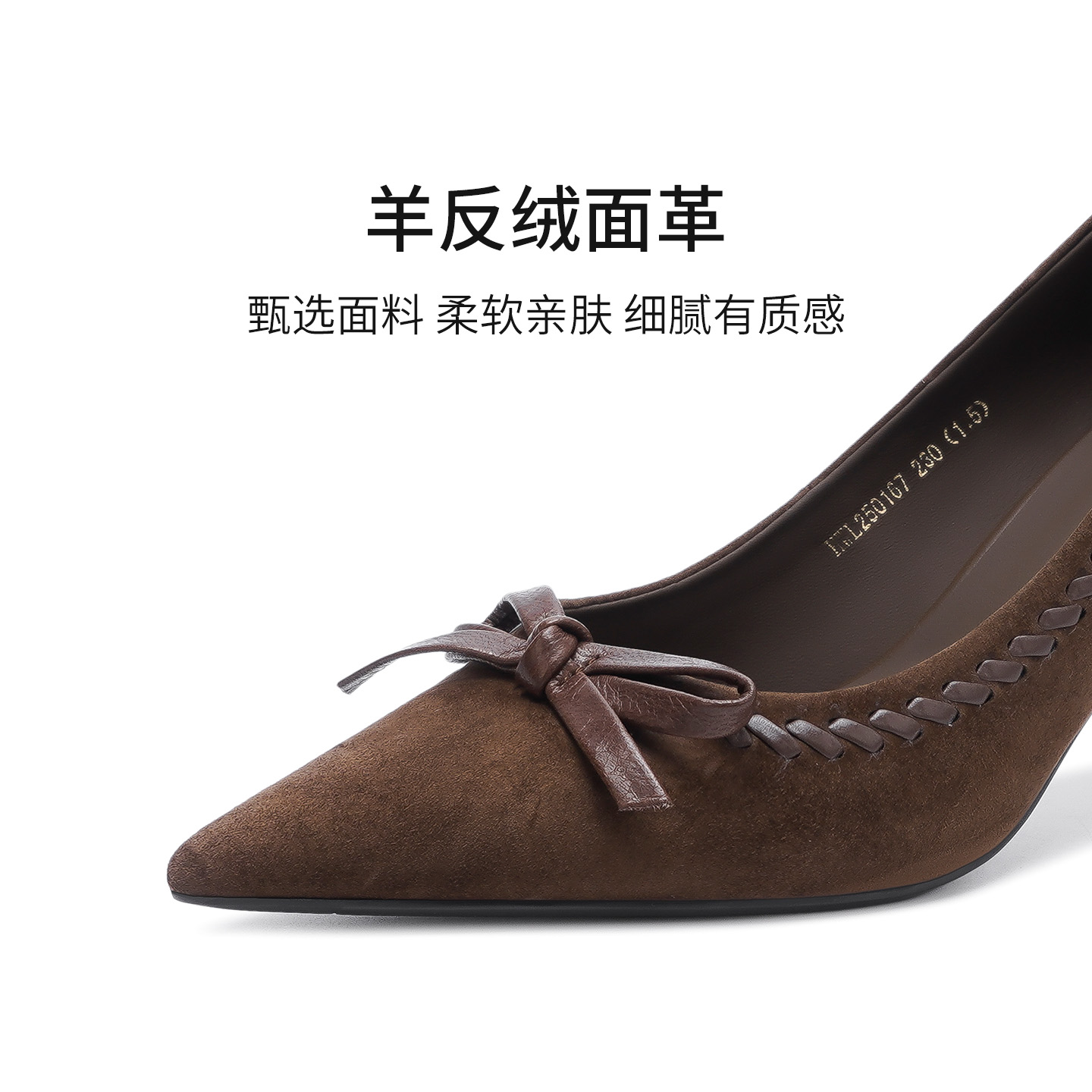 HWL250167 通勤上班百搭舒适女鞋 哈森绒面尖头质感浅口单鞋 高跟鞋