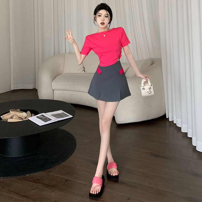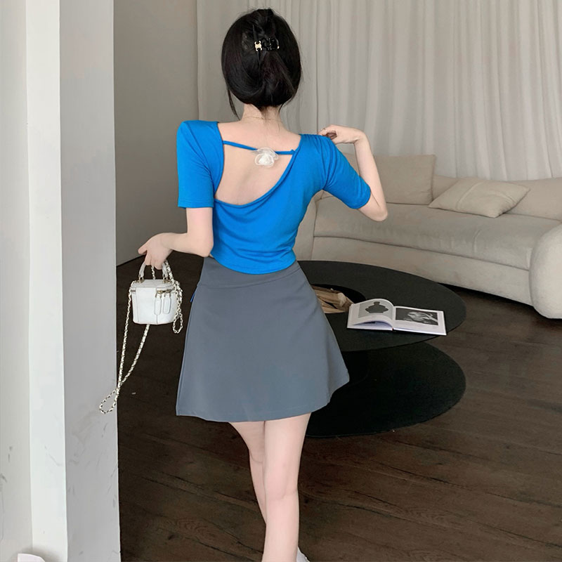 高腰A字短裙套装 不规则镂空花朵纯欲上衣 套装 洋气甜辣设计感时尚