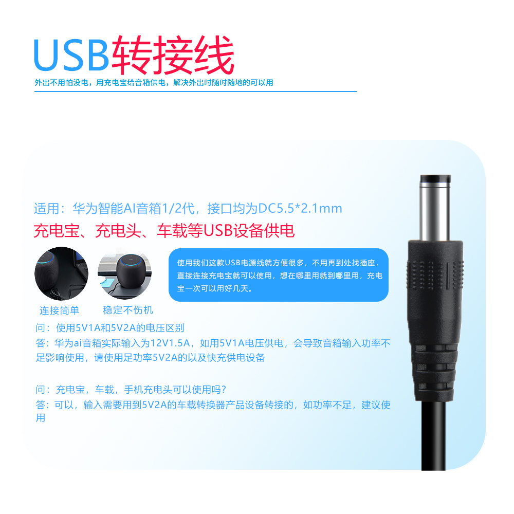 充电头 2E音箱电源线充电宝 车载户外USB转接线给音箱供电12V升压线 华为小艺智能AI音箱2华为AI 适用于