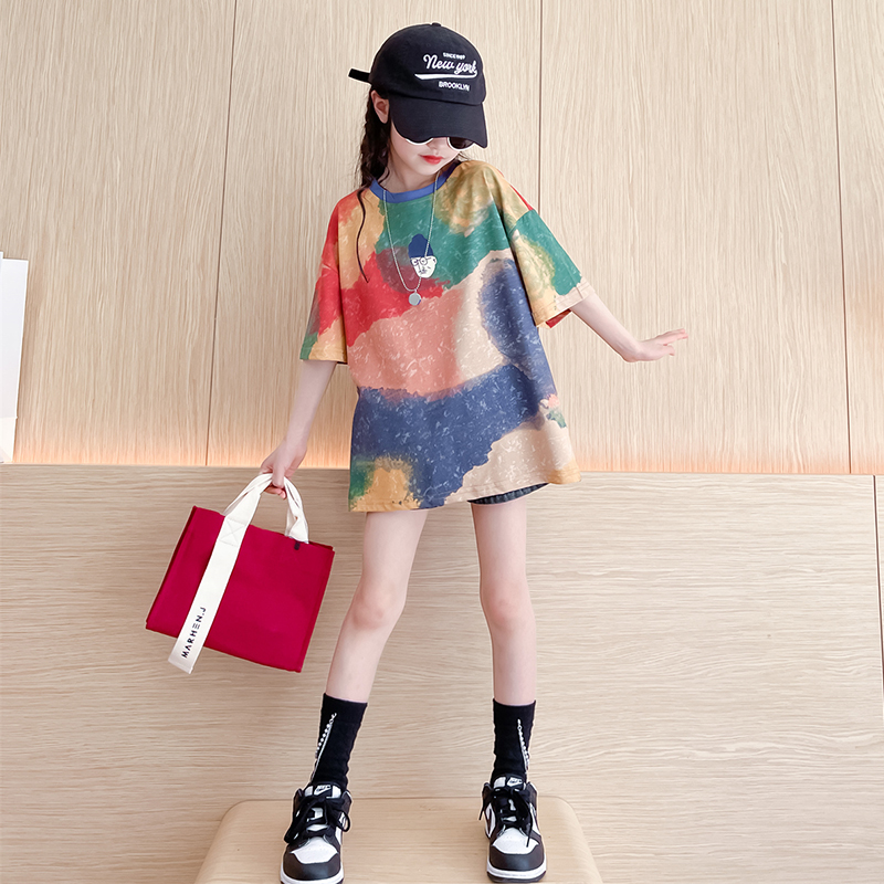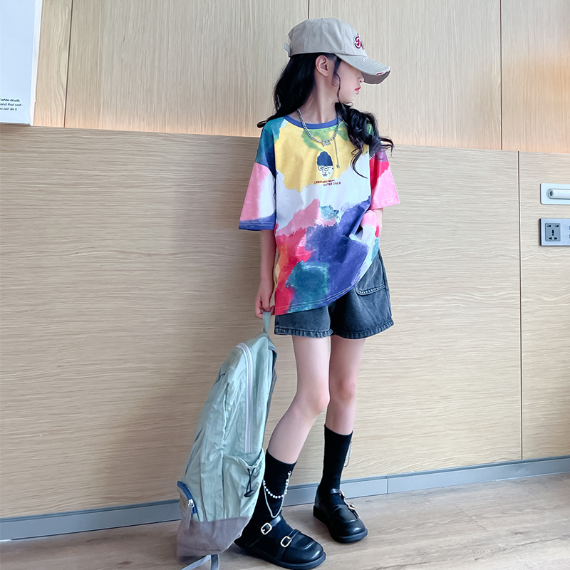 t恤2025新款 洋气童装 儿童衣服大童宽松半袖 女孩夏装 夏季 女童短袖