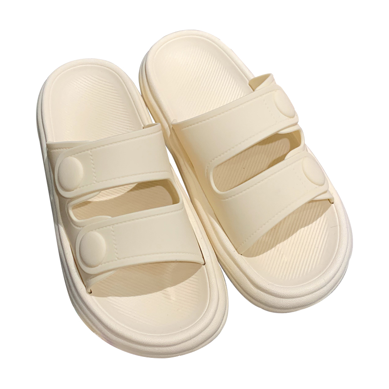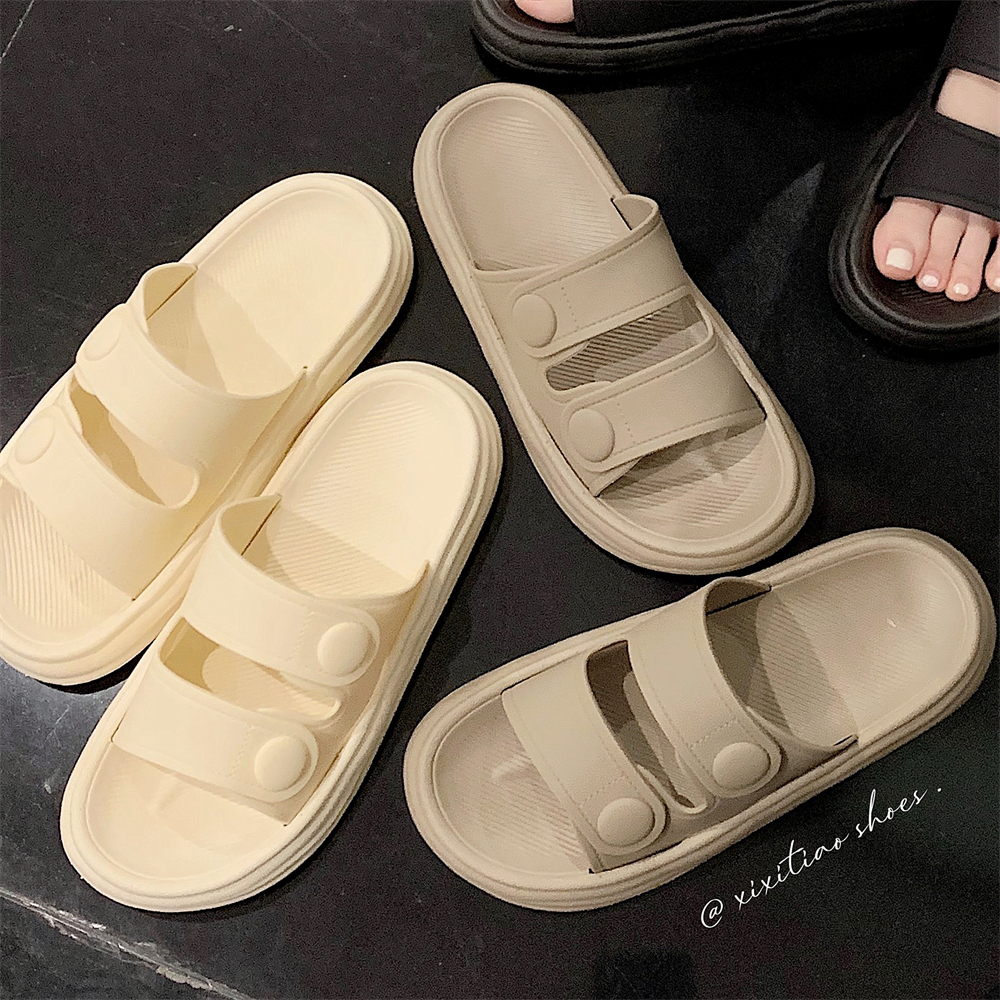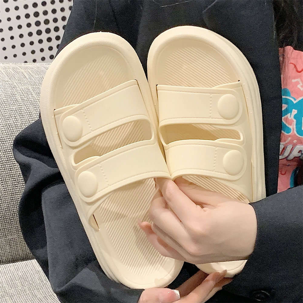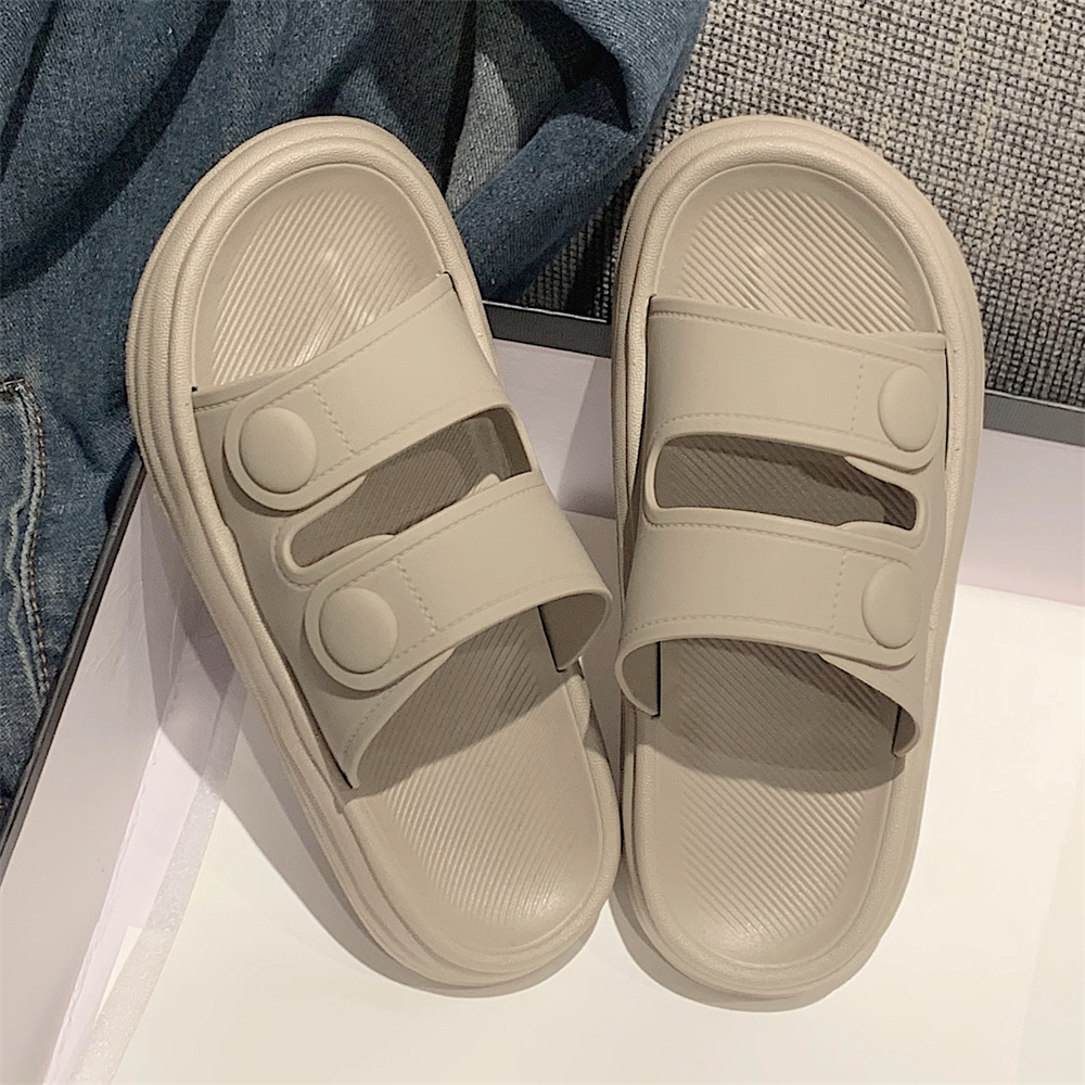 网红女夏日系新款 海边度假简约纯色双带纽扣沙滩凉拖 防滑厚底拖鞋