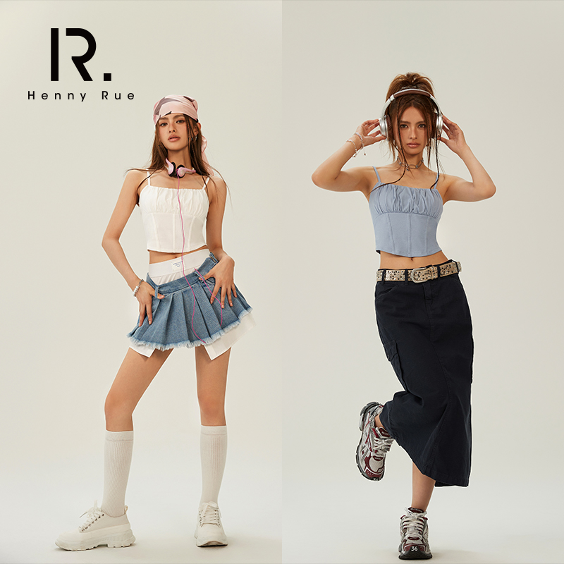 HENNY RUE亨尼露春夏女士抽褶吊带背心女外穿
