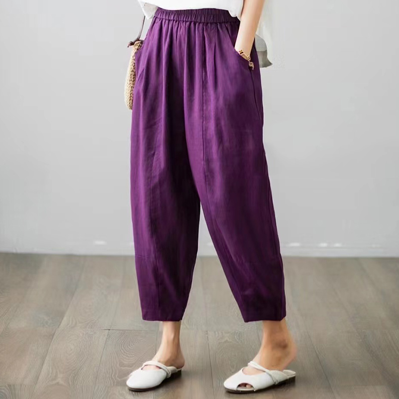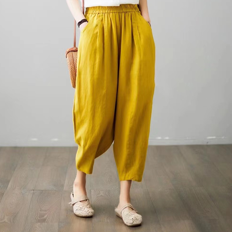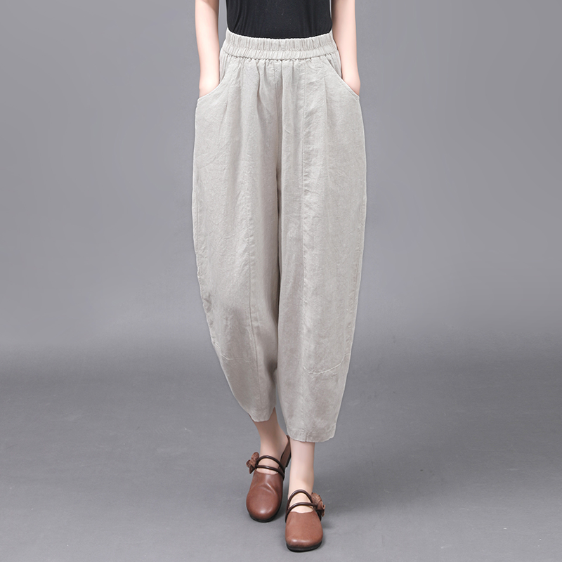 女薄款 胖mm九分棉麻休闲裤 亚麻文艺灯笼裤 宽松大码 哈伦裤 2025夏季