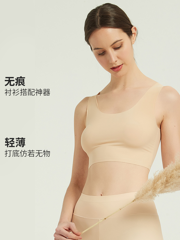 打底衫 防走光背心女内搭冰丝无痕大码 内衬肉色防透超薄透气夏季