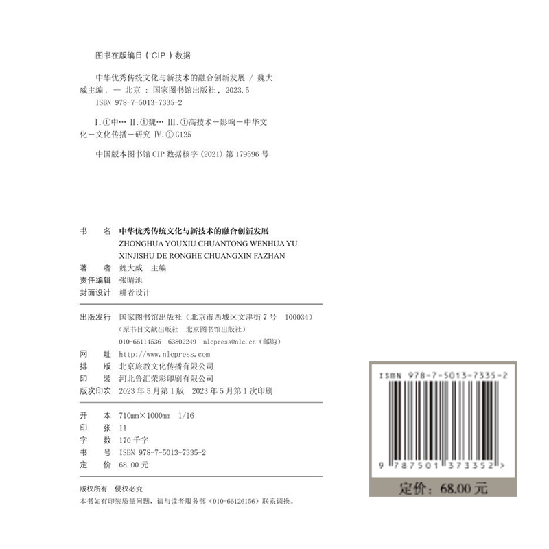 中华优秀传统文化与新技术 社 融合创新发展 国家图书馆出版 9787501373352 魏大威主编 现货正版