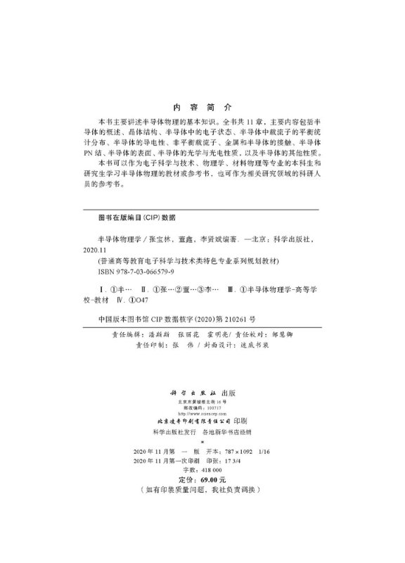 张宝林 半导体物理学 董鑫 普通高等教育电子科学与技术类特色专业系列规划 社书籍KX 科学出版 书