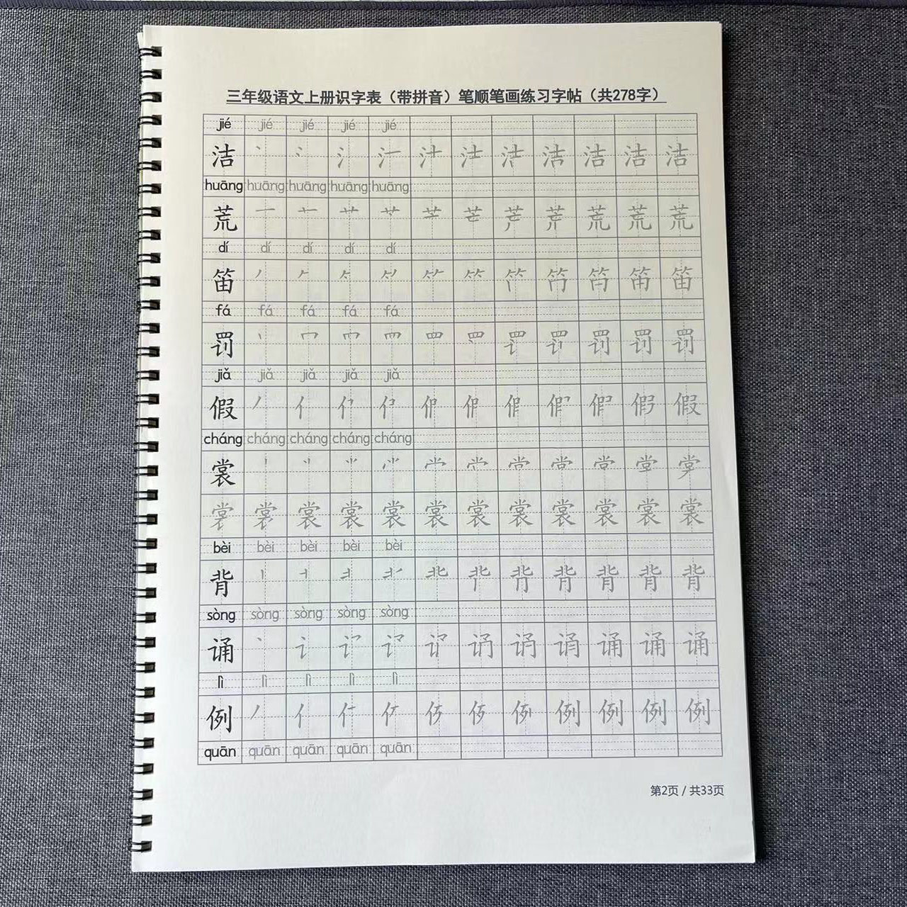 识字表三年级上册笔顺笔画练习教科书语文课本教材同步小学生3年级上练字习字帖训练写好中国字做好中国人278字33页单面米黄护眼纸